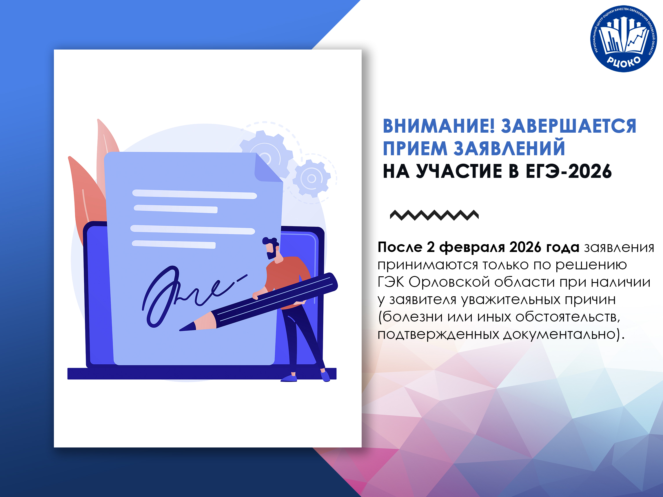 Внимание! Завершается прием заявлений на участие в ЕГЭ-2026
