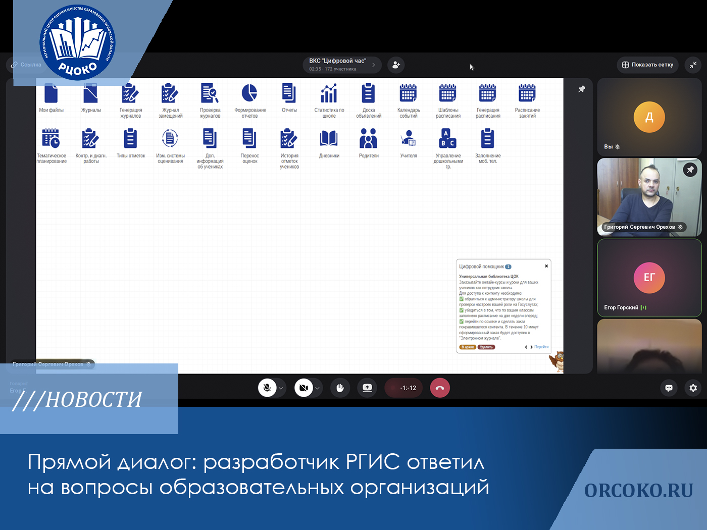Прямая линия с разработчиком РГИС «Образование-57»