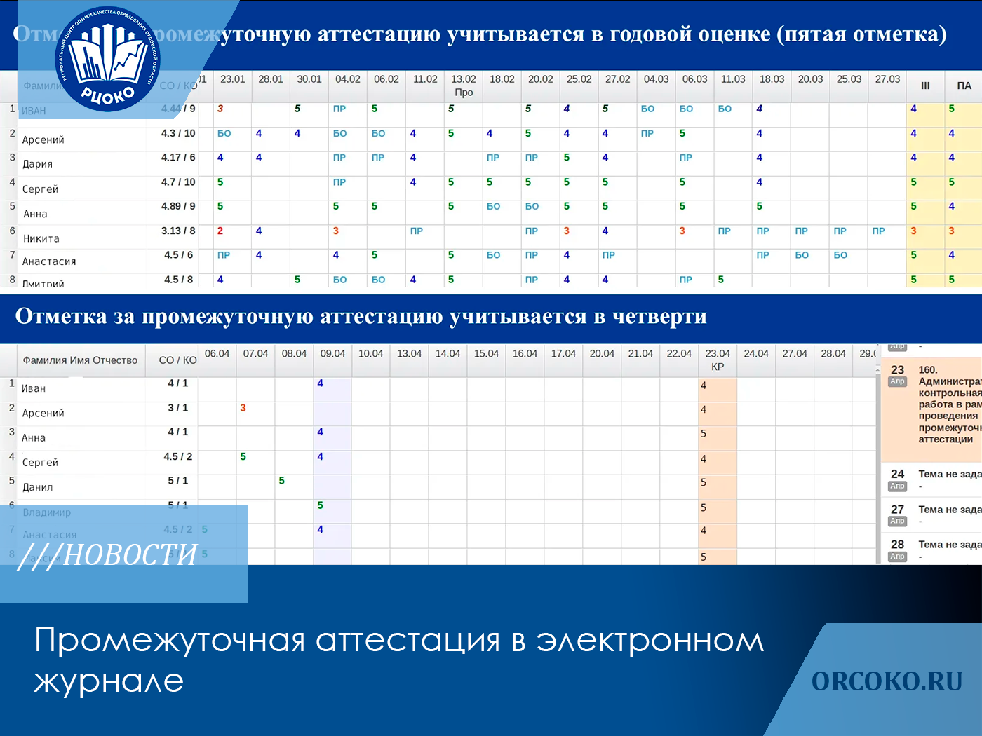 Промежуточная аттестация в электронном журнале