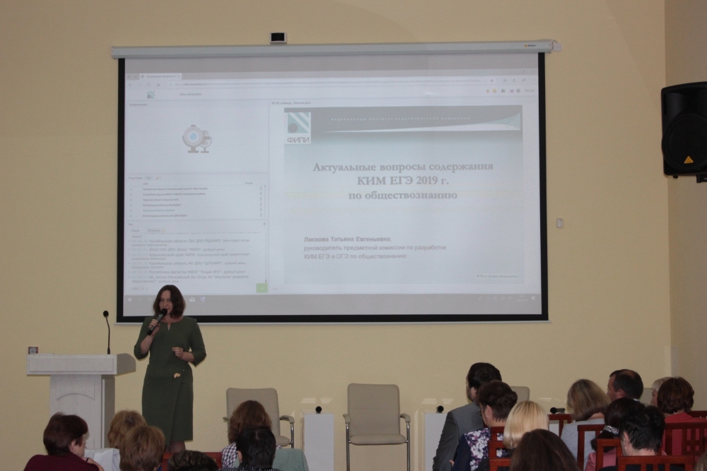 О прогрессивных тенденциях, проявившихся в уровнях образовательной подготовки обучающихся по обществознанию, 20 сентября 2018 года рассказала Татьяна Евгеньевна Лискова – руководитель предметной комиссии по разработке КИМ ЕГЭ и ОГЭ по обществознанию. Сделанный ею акцент на изменения в содержании КИМ, критериальной основы в оценивании развернутых ответов, формулировок заданий, оформление ответов выпускниками – все это станет ориентиром в работе педагогов области.