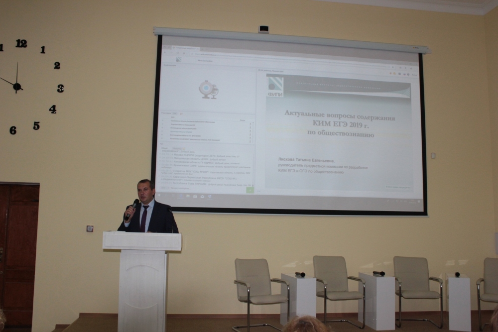 Информированию педагогического сообщества о структурных изменениях моделей КИМ управлением общего образования Департамента образования Орловской области уделяется должное внимание. Заместитель начальника управления общего образования Мартынова Наталья Александровна в приветственном слове педагогам обозначила задачи региональной системы образования в общественно – научной предметной области.