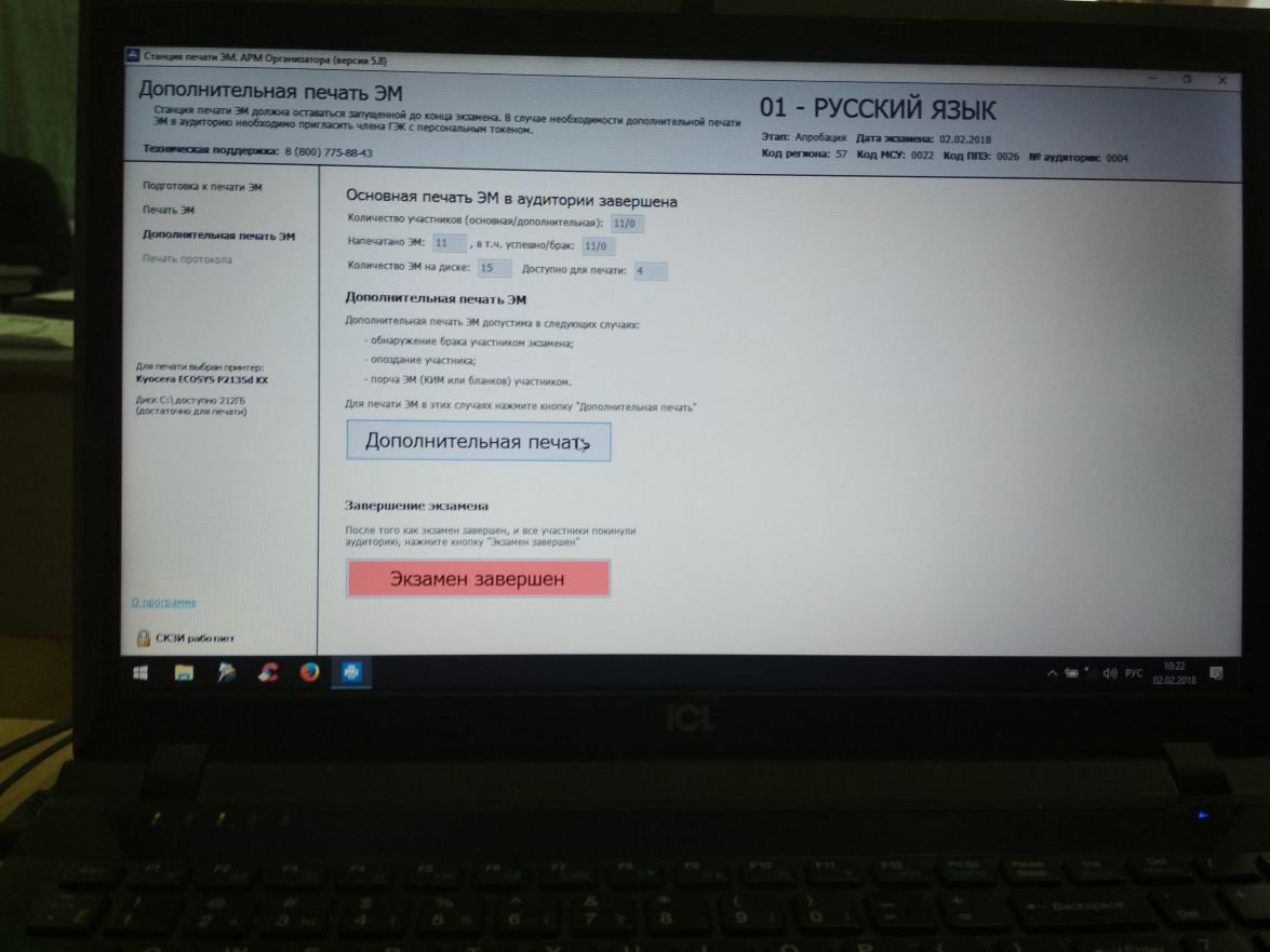 На печать полного комплекта для одного участника ЕГЭ отводится от 20 до 30 секунд. В среднем печать полных комплектов в аудитории из 15 человек занимает 10-12 минут.