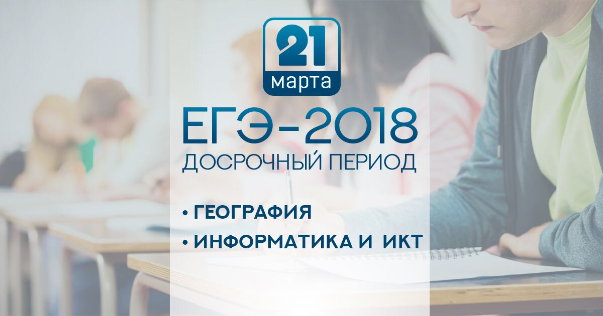 Согласно расписанию проведения единого государственного экзамена , 21 марта начинается досрочный период ЕГЭ: в этот день проходят экзамены по географии и информатике и ИКТ.