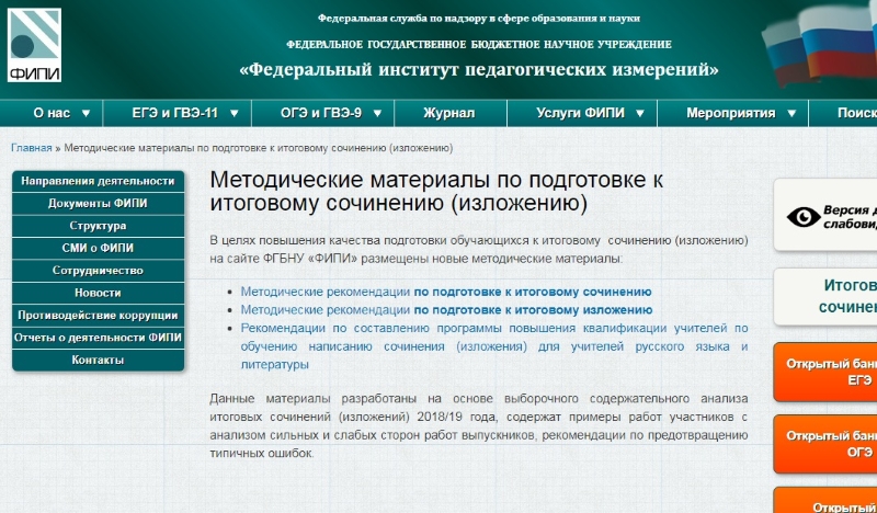 Федеральный институт педагогических измерений (ФИПИ) опубликовал результаты выборочного анализа итоговых сочинений 2018/2019 учебного года и методические рекомендации по подготовке к итоговому сочинению.