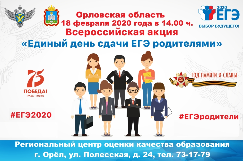Орловская область присоединится к Всероссийской акции «Единый день сдачи ЕГЭ родителями» | КУ ОО "РЦОКО"