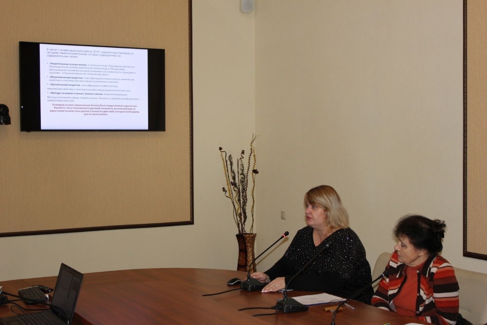 Заместитель председателя предметной комиссии по химии, методист отдела естественнонаучных дисциплин БУООДПО «Институт развития образования», Г. В. Шевякова прокомментировала решение задач повышенного уровня, акцентировав внимание педагогов на выборе реагентов школьниками, умении расставлять коэффициенты, составлять электронный баланс.