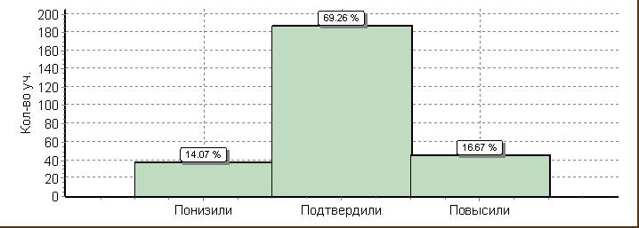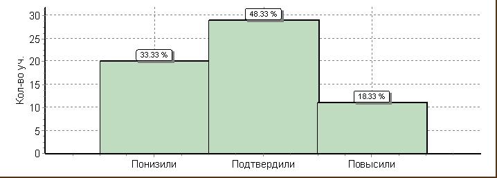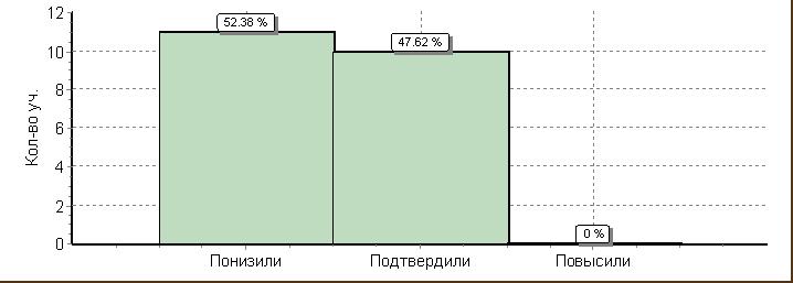 Из 21 участника ВПР менее половины орловских школьников подтвердили свои результаты, т.е. имели в журнале соответствующую отметку, 11 обучающихся понизили свой результат (рисунок 6).