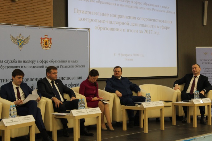 С 8 по 9 февраля в Рязани прошло Всероссийское совещание «Приоритетные направления совершенствования контрольно-надзорной деятельности в сфере образования и итоги за 2017 год». Его участниками стали порядка 400 руководителей профильных ведомств из всех регионов страны, представителей надзорных органов, правоохранительных структур, учреждений по повышению квалификации педагогических кадров.