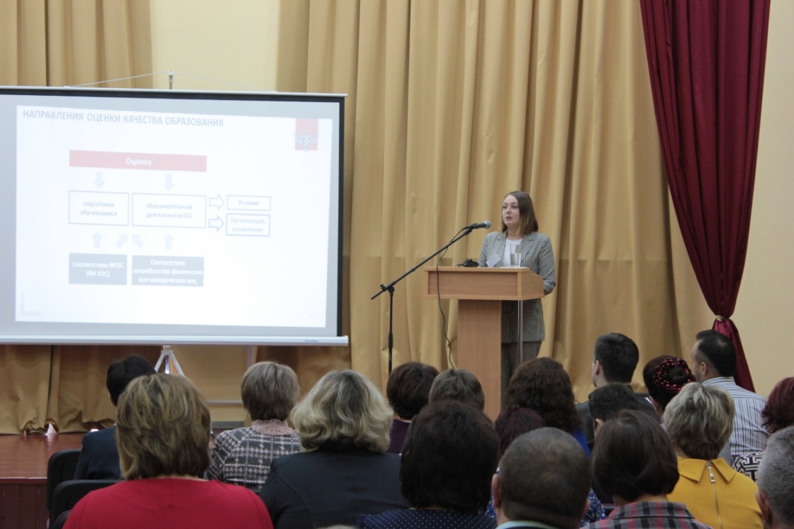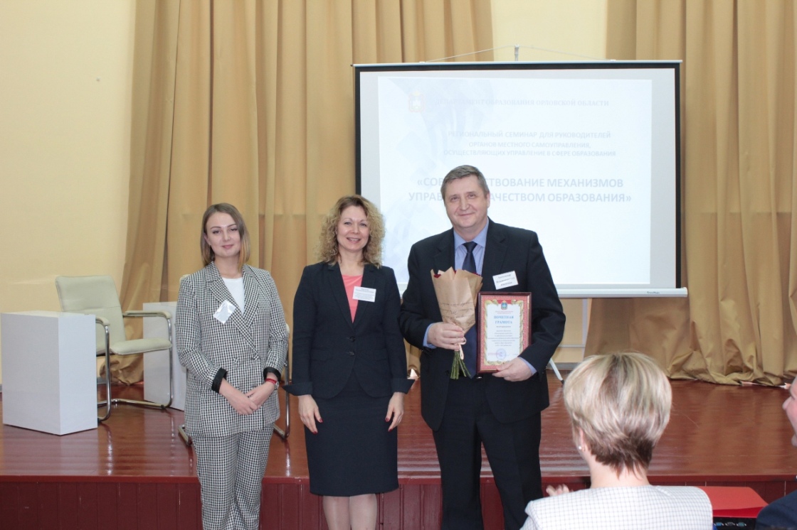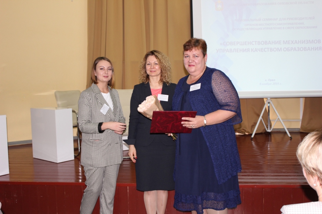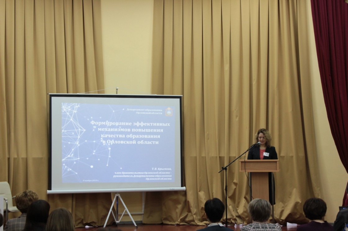 Управленческие аспекты качества образования на федеральном и региональном уровнях были освещены в выступлениях члена Правительства Орловской области – руководителя Департамента образования Орловской области Крымовой Татьяны Владленовны и заместителя начальника Управления – начальника отдела оценки качества образования и контроля за государственной итоговой аттестацией Управления оценки качества образования и контроля (надзора) за деятельностью органов государственной власти субъектов Российской Федерации Федеральной службы по надзору в сфере образования и науки Теровой Антонины Андреевны.