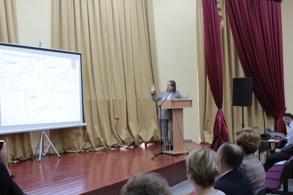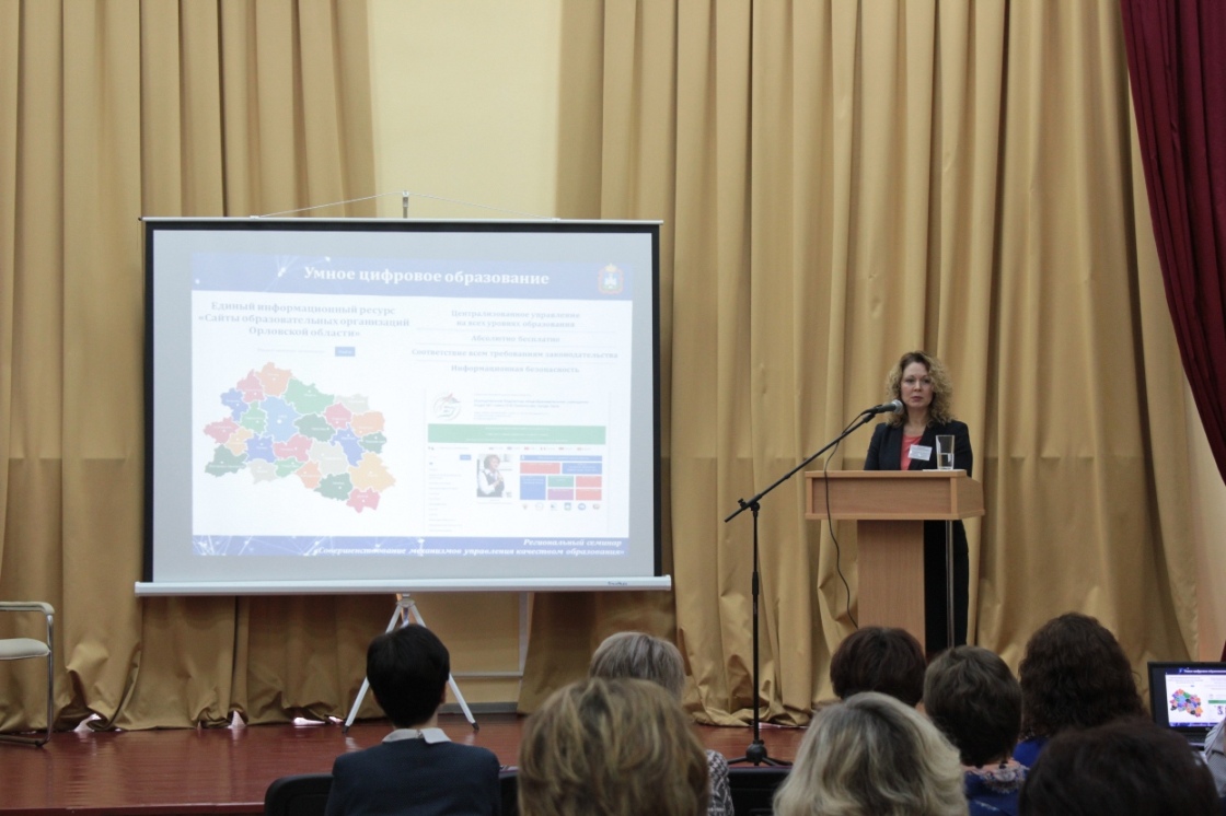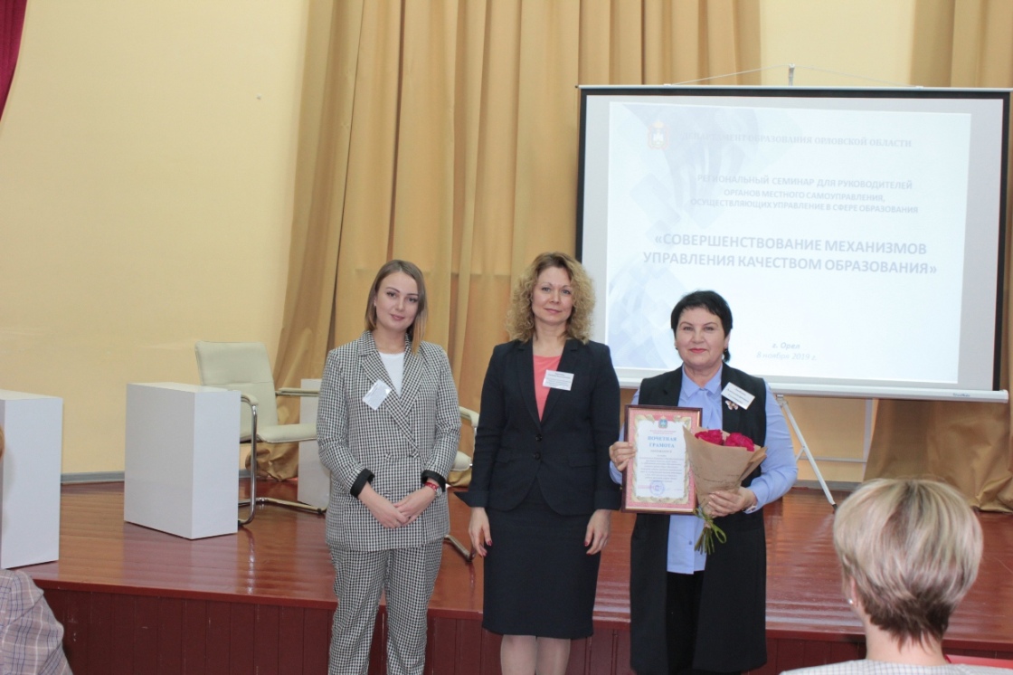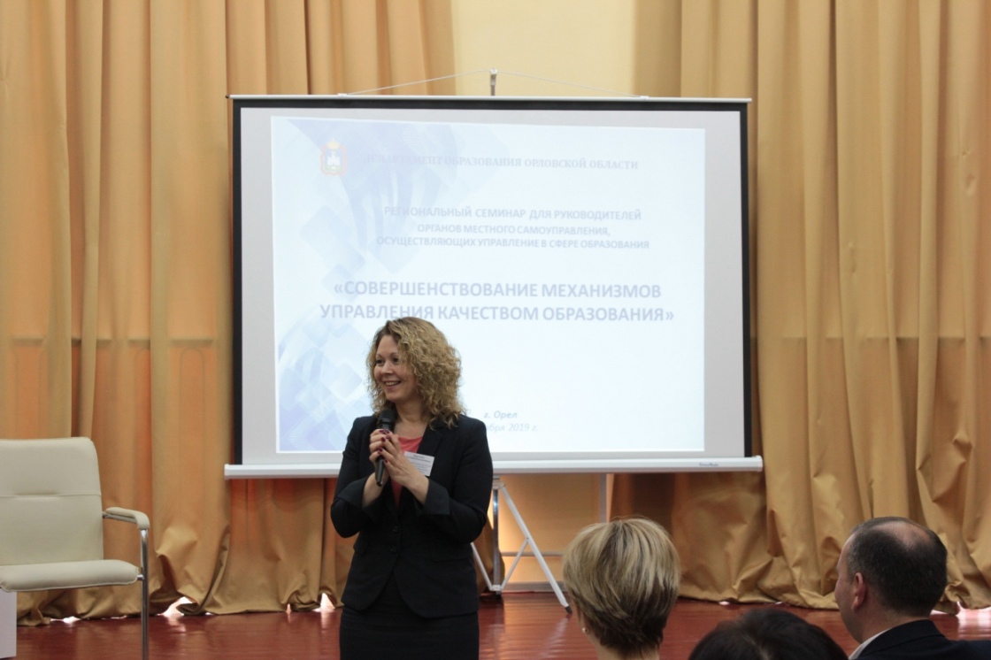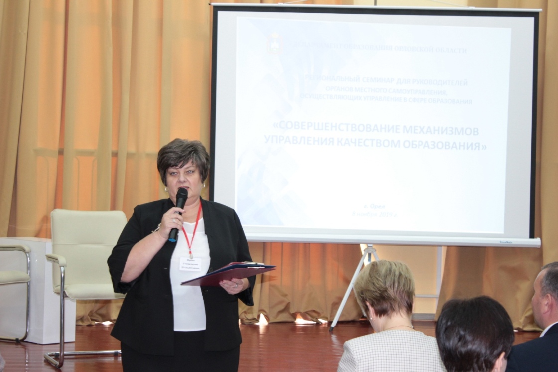 Региональный семинар «Совершенствование механизмов управления качеством образования» состоялся 8 ноября 2019 года в средней школе № 27 с углубленным изучением английского языка г. Орла. Актуальность поднятой проблемы консолидировала руководителей органов местного самоуправления, осуществляющих управление в сфере образования, муниципальных координаторов ГИА – 11, директоров школ области, педагогов.