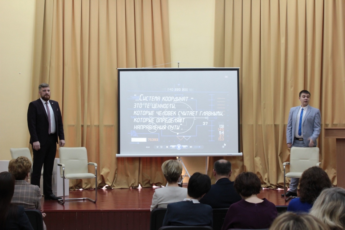 Диалог победителя регионального этапа Всероссийского конкурса «Учитель года – 2019» Шарова Сергея Николаевича, учителя астрономии МБОУ – гимназии № 34 г. Орла, с победителем регионального конкурса обучающихся общеобразовательных организаций Орловской области «Ученик года – 2019» Мысиным Максимом, обучающимся МБОУ – гимназии № 16 г. Орла, открыл собравшимся секрет личного успеха в профессии и обучении.