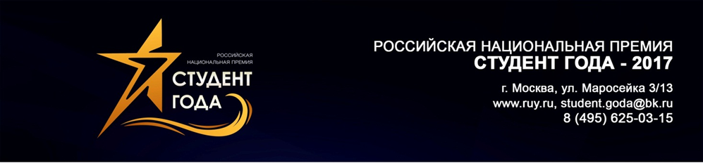 «Студент года» – это первая национальная премия, учрежденная Российским союзом молодежи и Министерством образования и науки РФ. Главная цель конкурса – выявление, поддержка и признание заслуг студентов, имеющих особые достижения в области науки, творчества, спорта, журналистики, молодежной политики, студенческого лидерства и общественной деятельности.