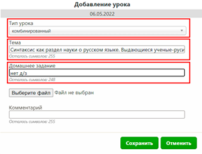 - в поле Домашнее задание прописать, например «нет домашнего задания», «нет д/з» и др.