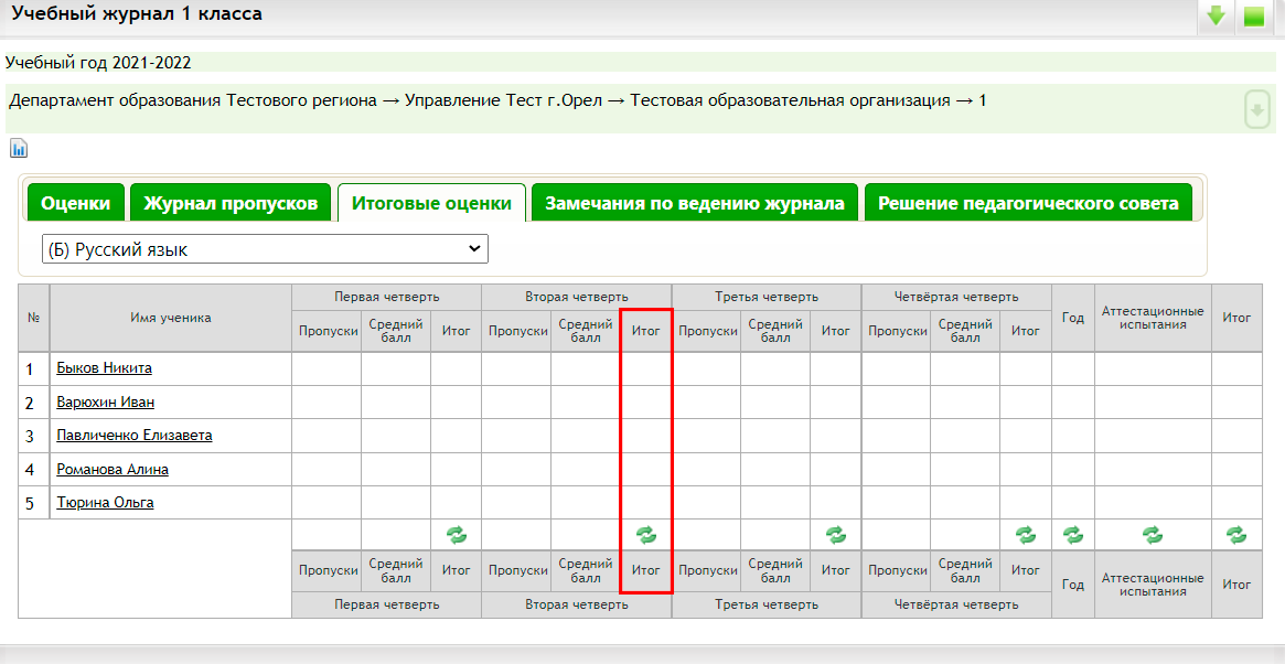 В электронном журнале итоговые отметки за четверти и год не выставляются!!!