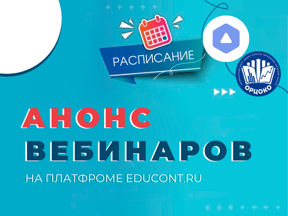 Анонс вебинаров на платформе educont.ru | КУ ОО "РЦОКО"