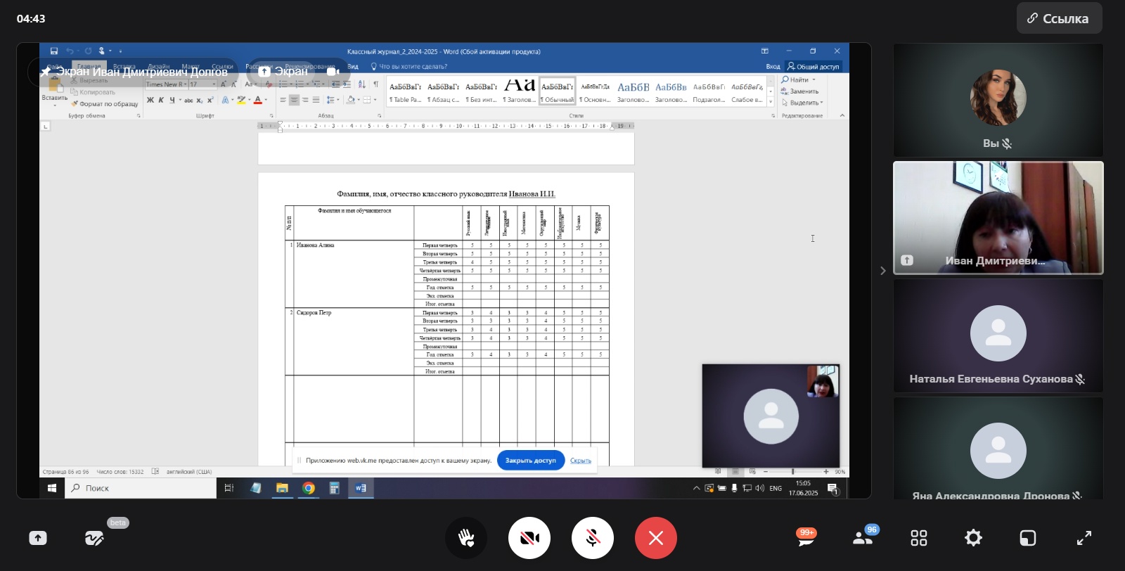 Темой встречи стало окончание учебного года в электронном журнале успеваемости обучающихся. Участники ВКС обсудили следующие вопросы: хранение и печать электронного журнала, оформление выбытия учеников 9 и 11 классов в электронном журнале.