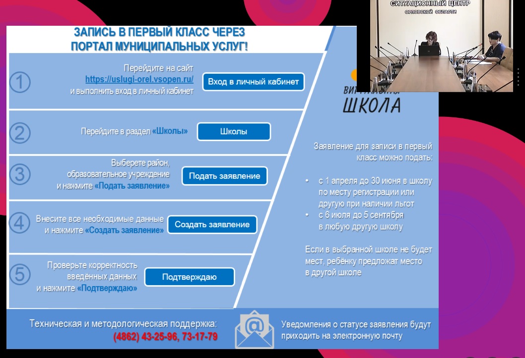 На совещании Департамента образования Орловской области рассматривались вопросы записи в 1 класс