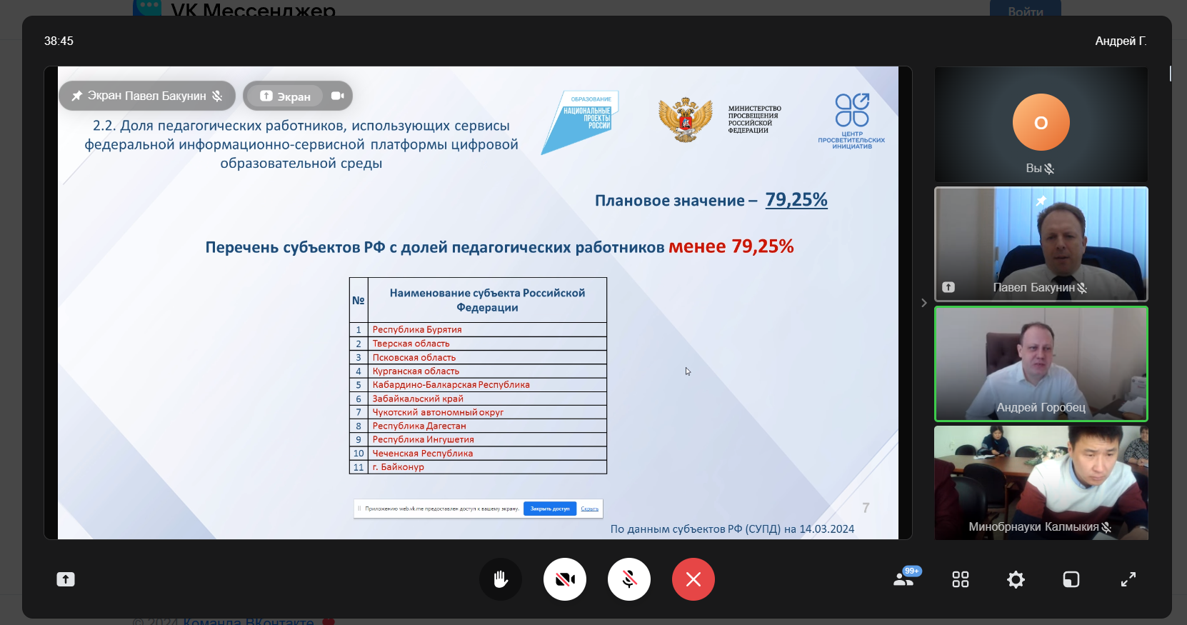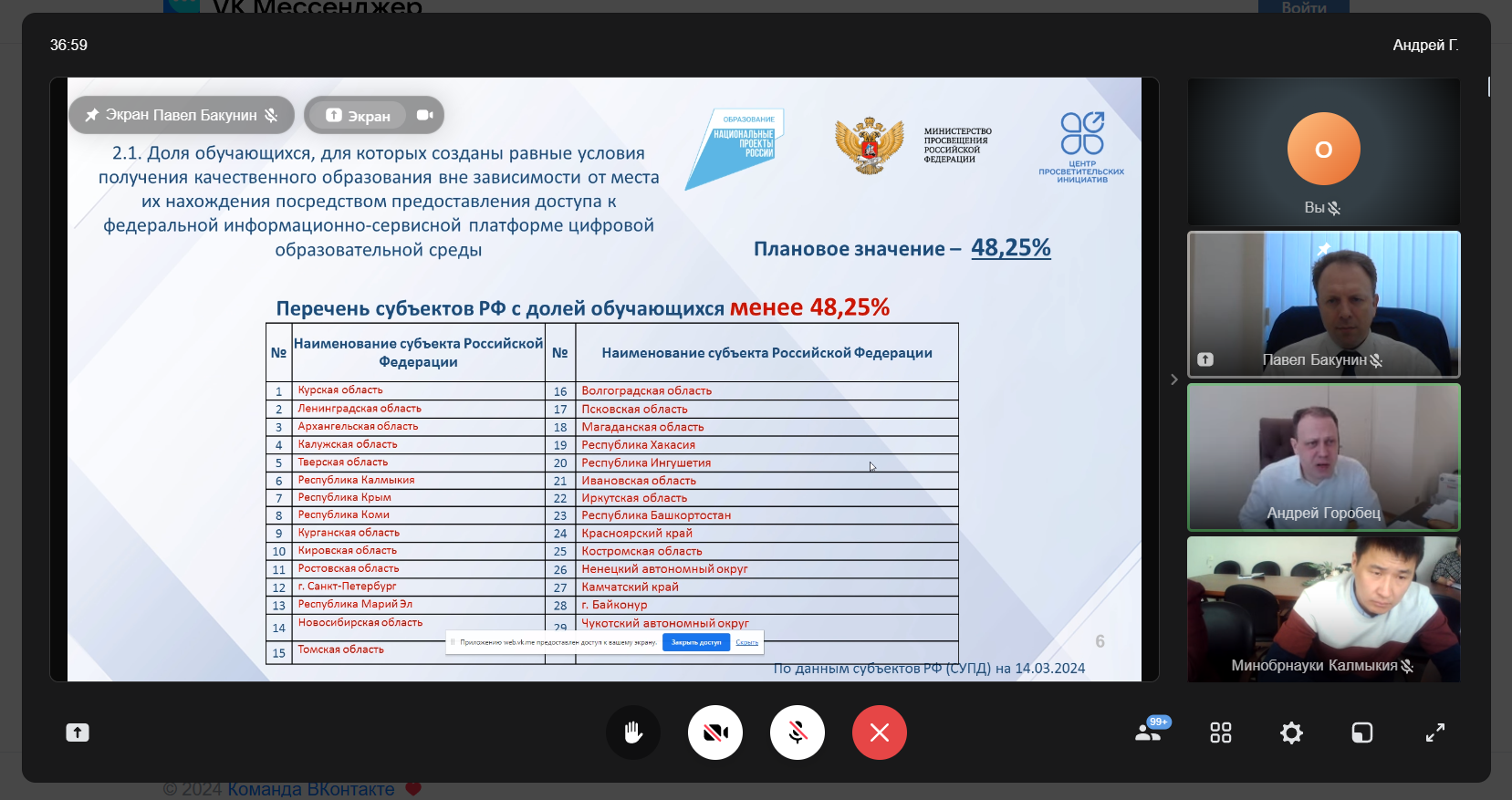 15 марта 2024 г. прошло совещания Министерства просвещения Российской Федерации в формате видео-конференц-связи по теме «О достижении значений показателей и результатов федерального проекта «Цифровая образовательная среда» в 2024 году».