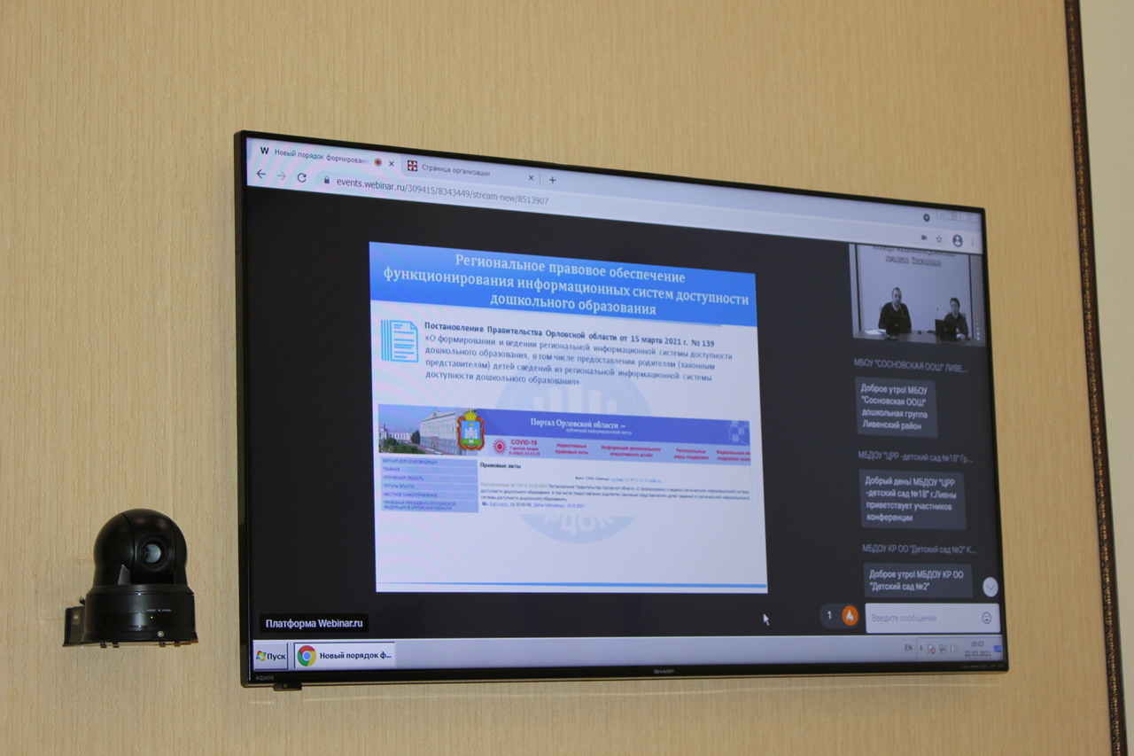 22 марта 2021 года на базе Регионального центра оценки качества образования для представителей дошкольных образовательных организаций состоялся вебинар по вопросу формирования и ведения РИС «Виртуальная школа» в соответствии с Постановлением Правительства Орловской области № 139 от 15.03.2021 г. «О формировании и ведении региональной информационной системы доступности дошкольного образования, в том числе предоставлении родителям (законным представителям) детей сведений из региональной информационной системы доступности дошкольного образования».