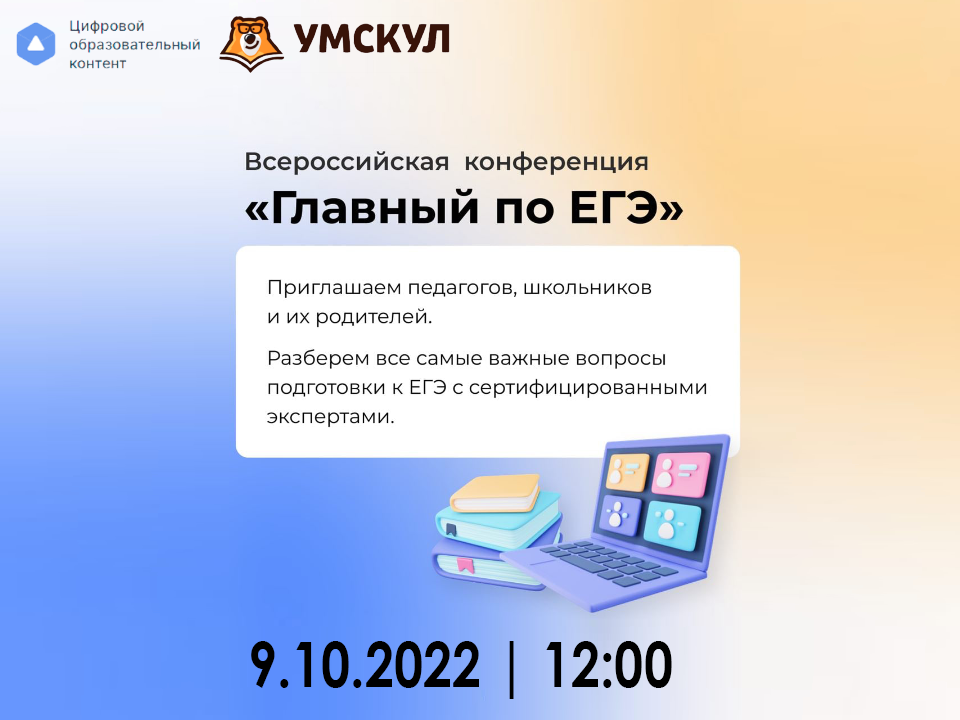 9 октября 2022 года партнер платформы Цифровой образовательный контент – онлайн-школа Умскул проведет бесплатную видеоконференцию по подготовке к ЕГЭ. Приглашаются учителя, выпускники 11 классов, а также их родители.