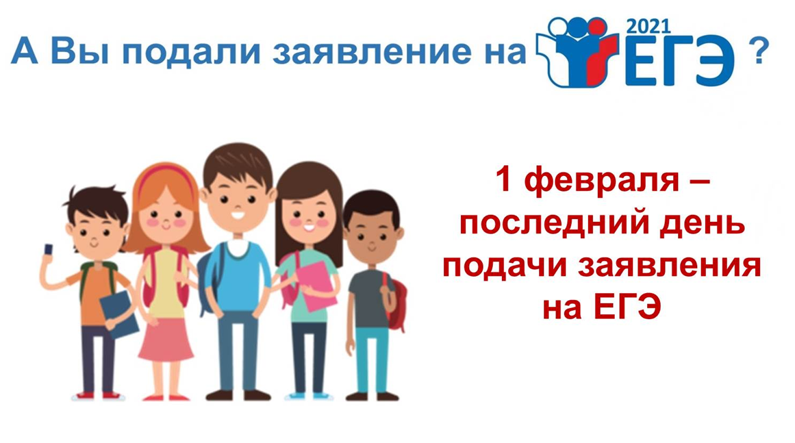 Завешается прием заявлений на участие в ЕГЭ-2021. Напоминаем, что 1 февраля – последний день подачи документов на участие в ЕГЭ 2021 года.