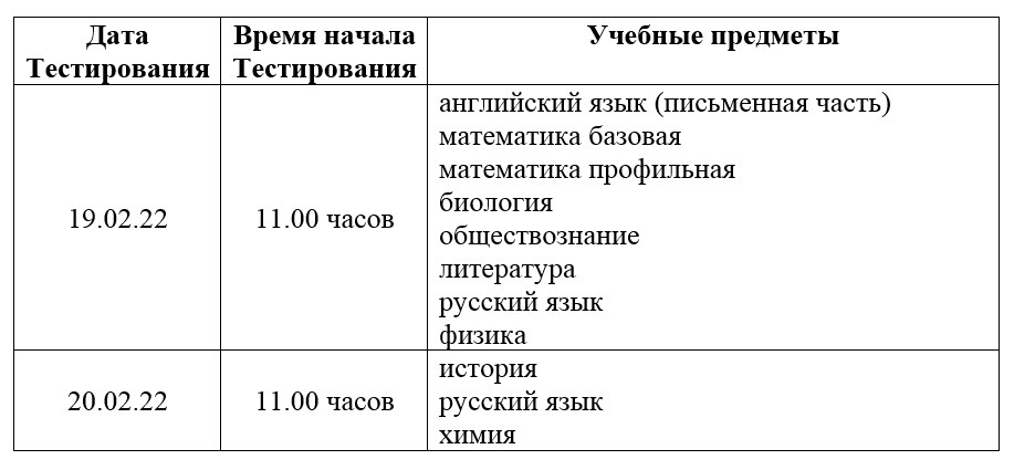 Одиннадцатиклассникам – участникам тренировочного тестирования 19 и 20 февраля 2022 года!