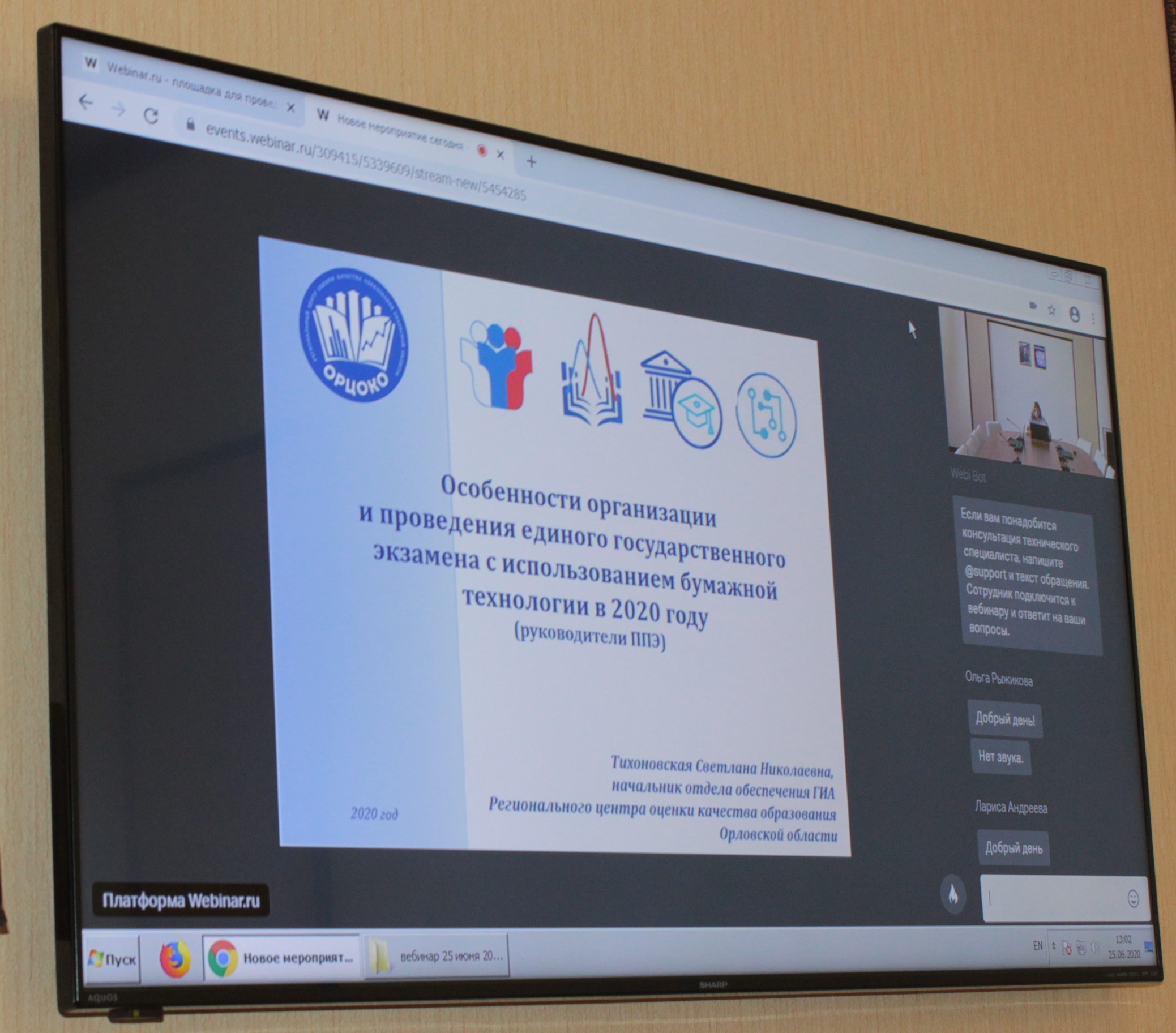 Особенности организации и проведения единого государственного экзамена с использованием бумажной технологии в 2020 году были рассмотрены на вебинаре для руководителей пунктов проведения экзамена и членов государственной экзаменационной комиссии, который прошел 25 июня 2020 года на базе Регионального центра оценки качества образования.