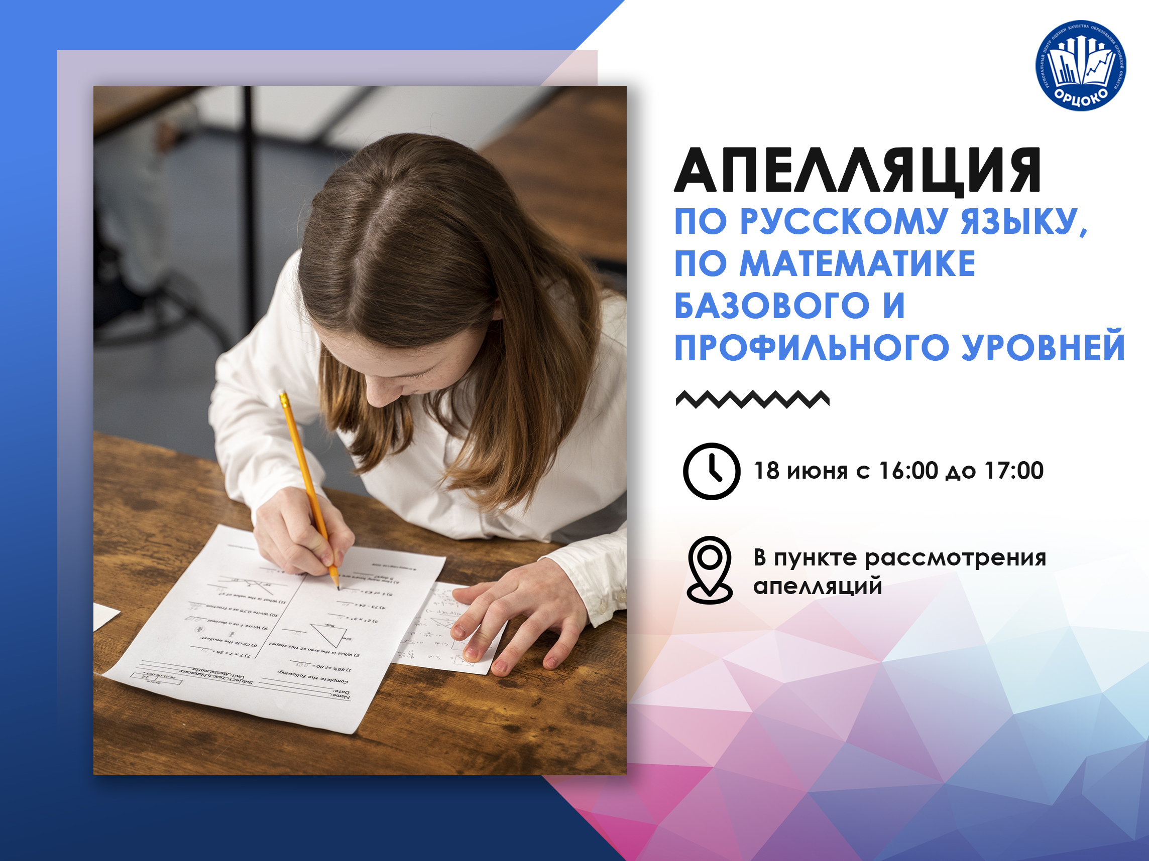 Рассмотрение апелляций о несогласии с выставленными баллами по русскому языку (28.05.2024 г.), по математике базового и профильного уровней (31.05.2024 г.) | КУ ОО "РЦОКО"
