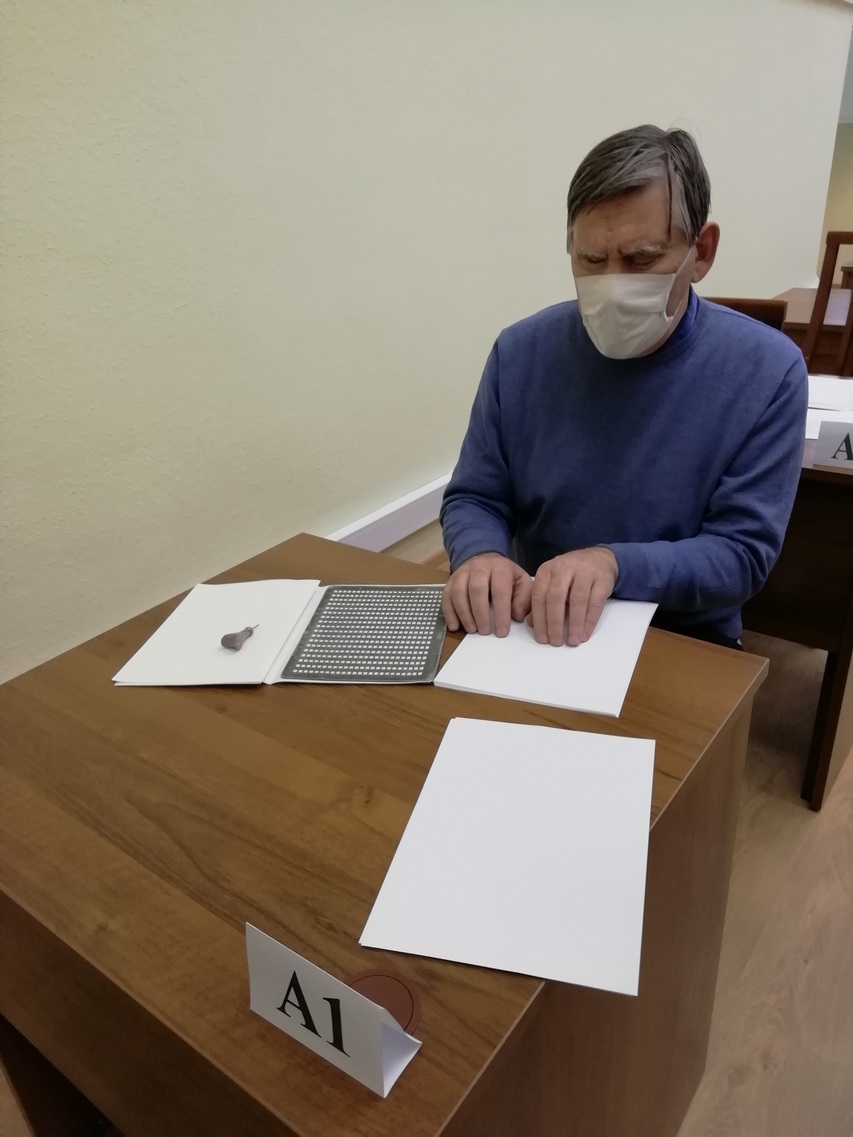 Так же, как и все родители, экзамен по русскому языку сдавали «необычные» участники, задания для которых комиссией тифлопереводчиков были переведены на шрифт Брайля. Ответы на задания такие участники ЕГЭ выполняли рельефно-точечным шрифтом, набивая его на специальной брайлевской бумаге с помощью грифеля, а не привычной для всех участников гелевой ручкой.