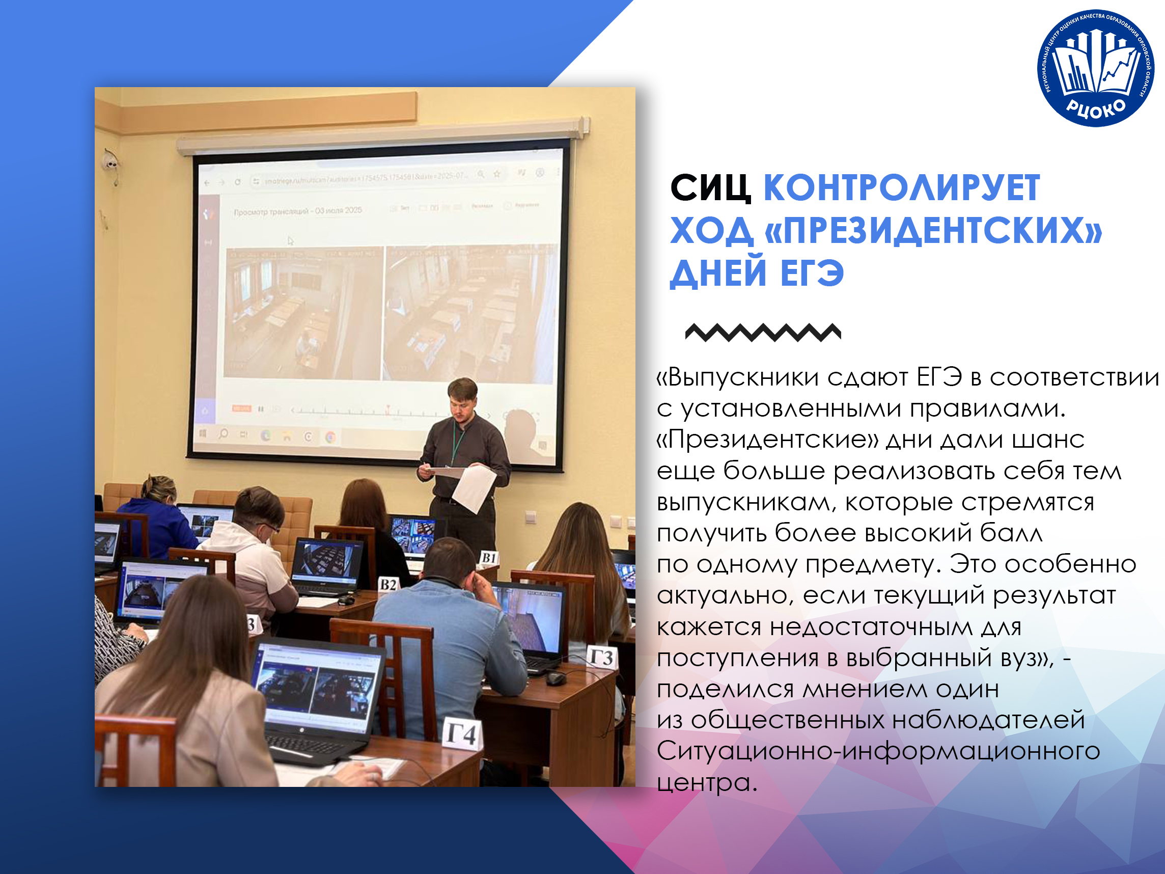 СИЦ контролирует ход «президентских» дней ЕГЭ
