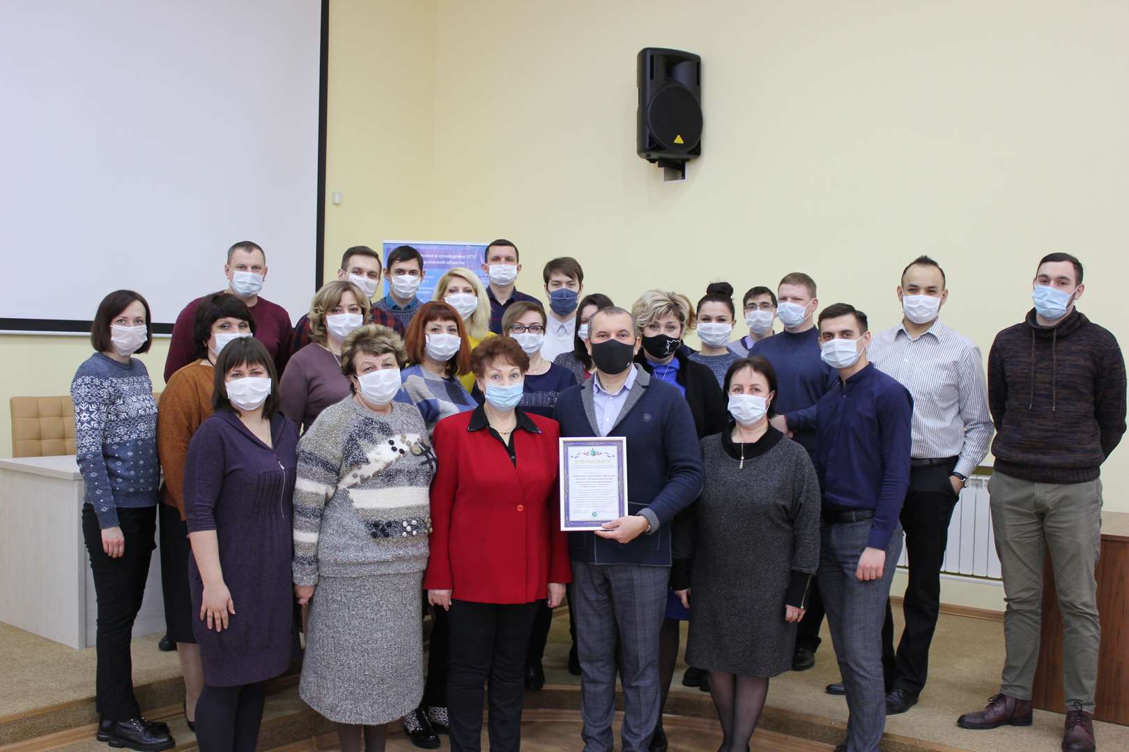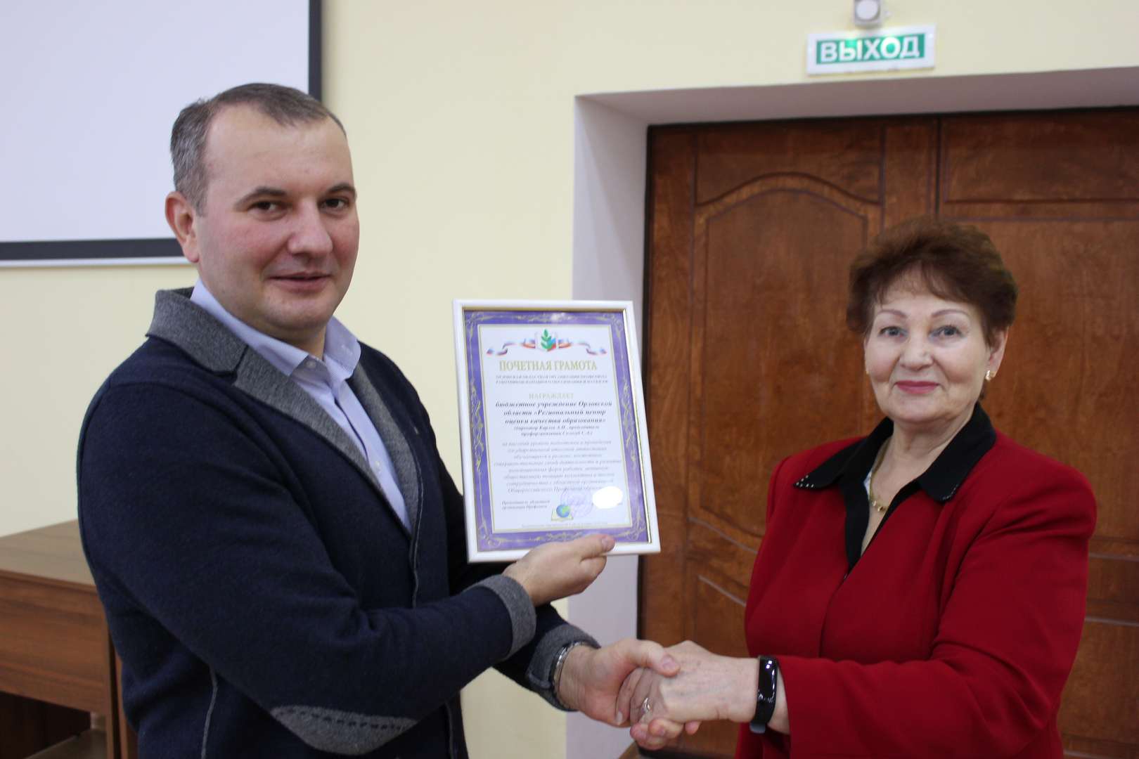 «Высокий уровень подготовки и проведения государственной итоговой аттестации в регионе, постоянное совершенствование своей деятельности и развитие инновационных форм работы, активная общественная позиция коллектива, тесное сотрудничество с областной организацией Общероссийского Профсоюза образования отличает коллектив Регионального центра оценки качества образования. Ставя такую высокую планку, вы заставляете коллективы системы образования двигаться вперед, тем самым формируете поступательное движение, добиваетесь новых результатов», — отметила Надежда Михайловна, вручая Почетную грамоту директору учреждения А. И. Карлову и председателю профорганизации С. А. Сологуб.
