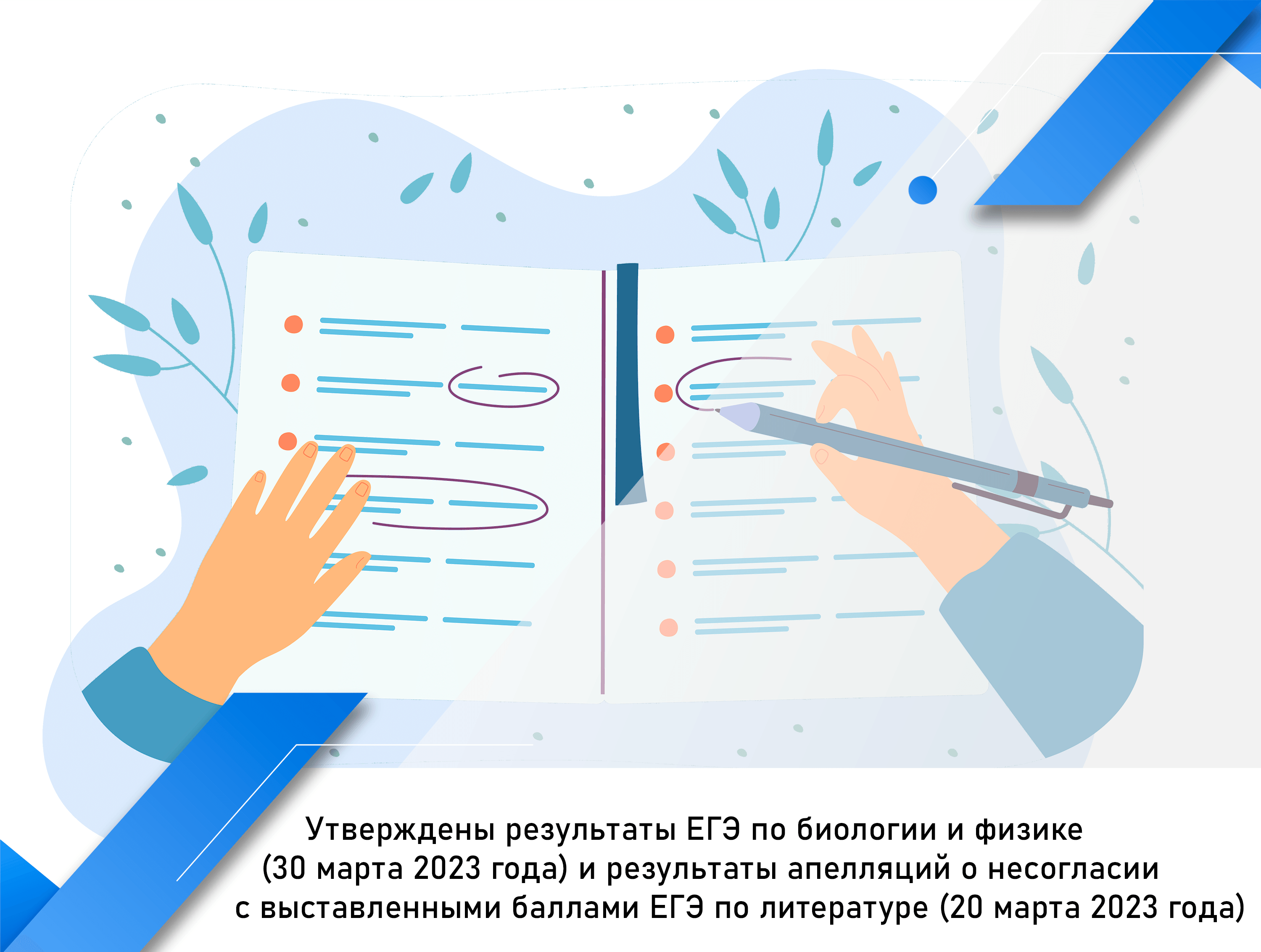 Утверждены результаты ЕГЭ по биологии и физике (30 марта 2023 года) и результаты апелляций о несогласии с выставленными баллами ЕГЭ по литературе (20 марта 2023 года)