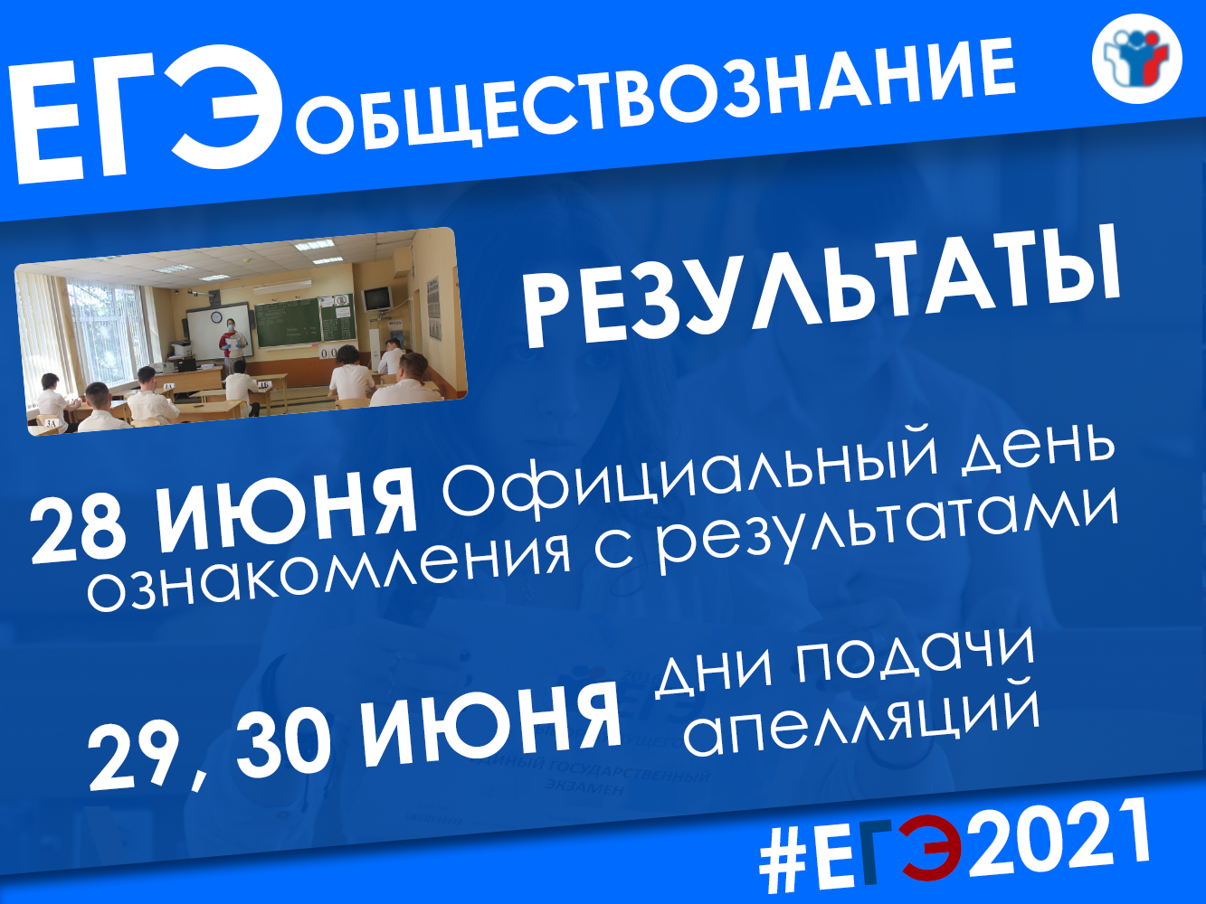 Официальный день ознакомления с результатами – 28 июня 2021 года, дни подачи апелляций о несогласии с выставленными баллами – 29, 30 июня 2021 года.