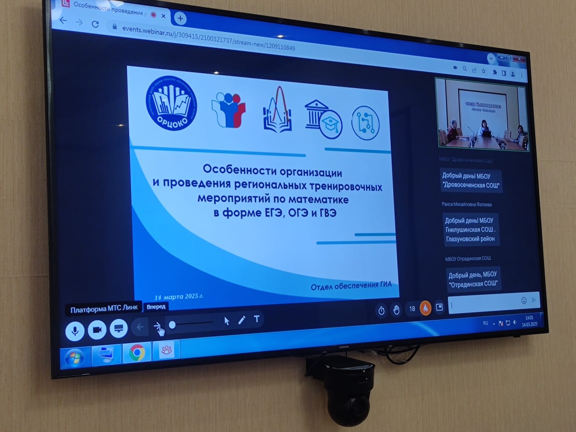 14 марта 2025 года в Региональном центре оценки качества образования прошел вебинар по вопросам организации и проведения тренировочных экзаменов по математике в форме ЕГЭ, ОГЭ и ГВЭ с участием обучающихся 9 и 11 классов в ППЭ.