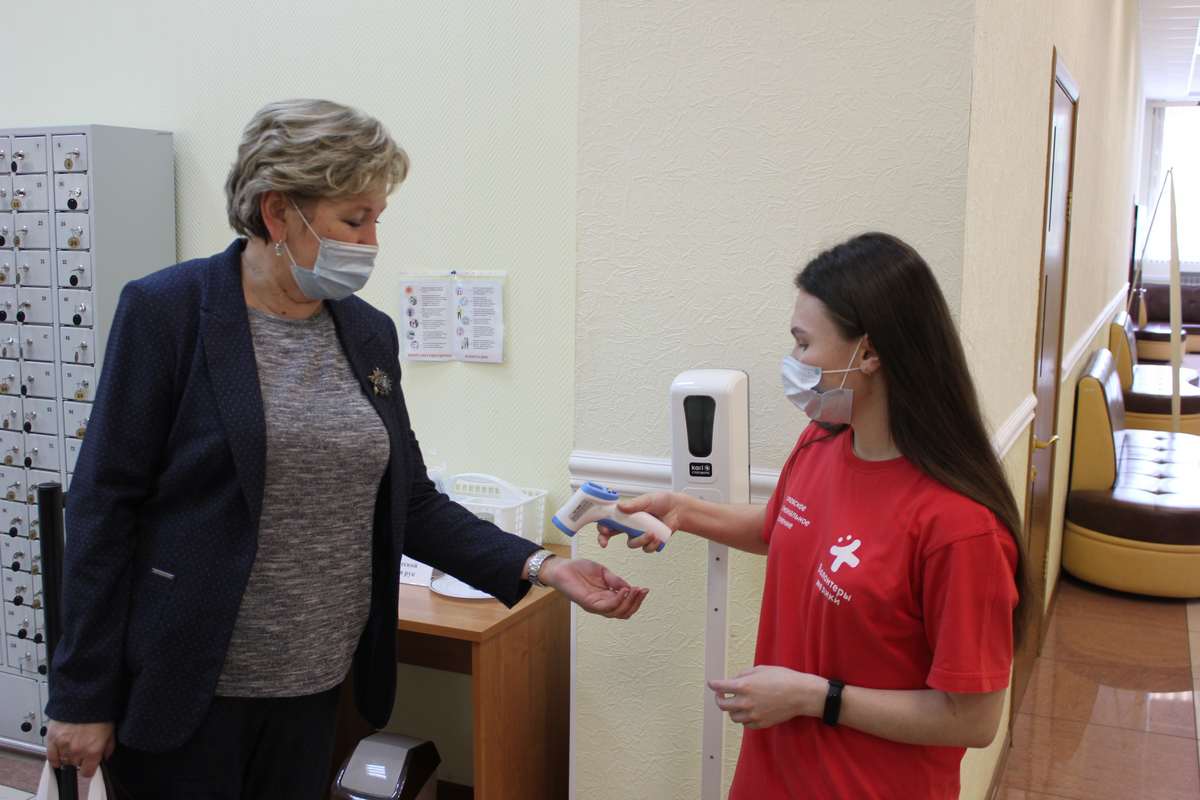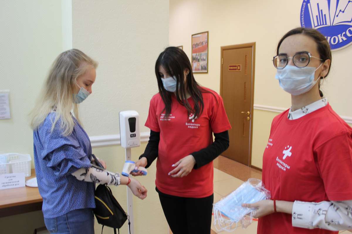 С начала экзаменационной кампании ежедневно студенты – медики измеряют температуру, обрабатывают руки дезинфицирующими средствами сотрудникам Центра, экспертам предметных комиссий, аккредитованным общественным наблюдателям, членам ГЭК.