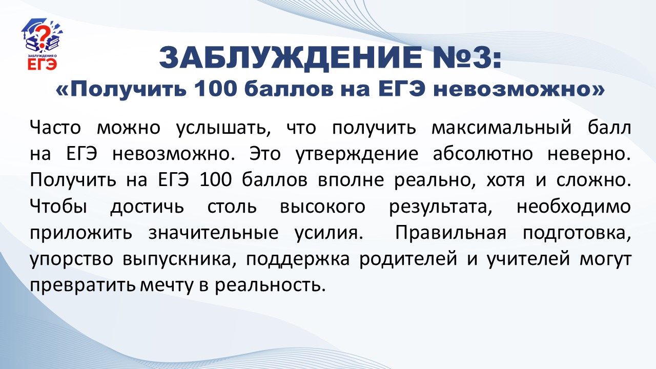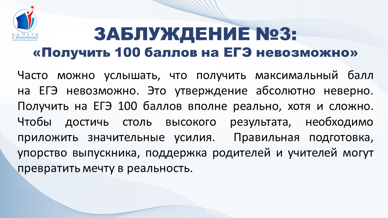 Заблуждение № 3: «Получить 100 баллов на ЕГЭ невозможно» | КУ ОО "РЦОКО"