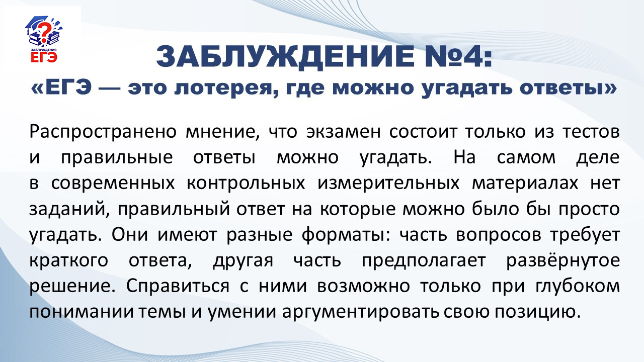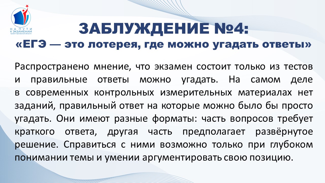 Заблуждение № 4: «ЕГЭ — это лотерея, где можно угадать ответы» | КУ ОО "РЦОКО"