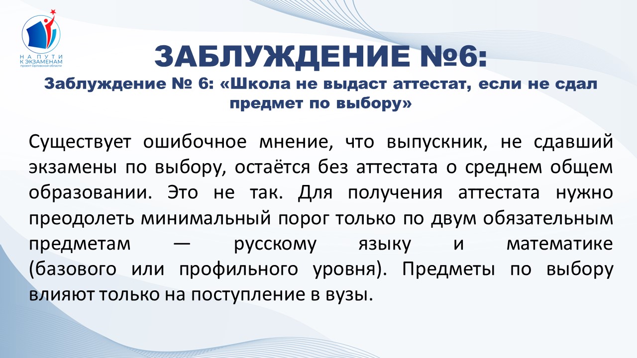 Заблуждение № 6: «Школа не выдаст аттестат, если не сдал предмет по выбору» | КУ ОО "РЦОКО"