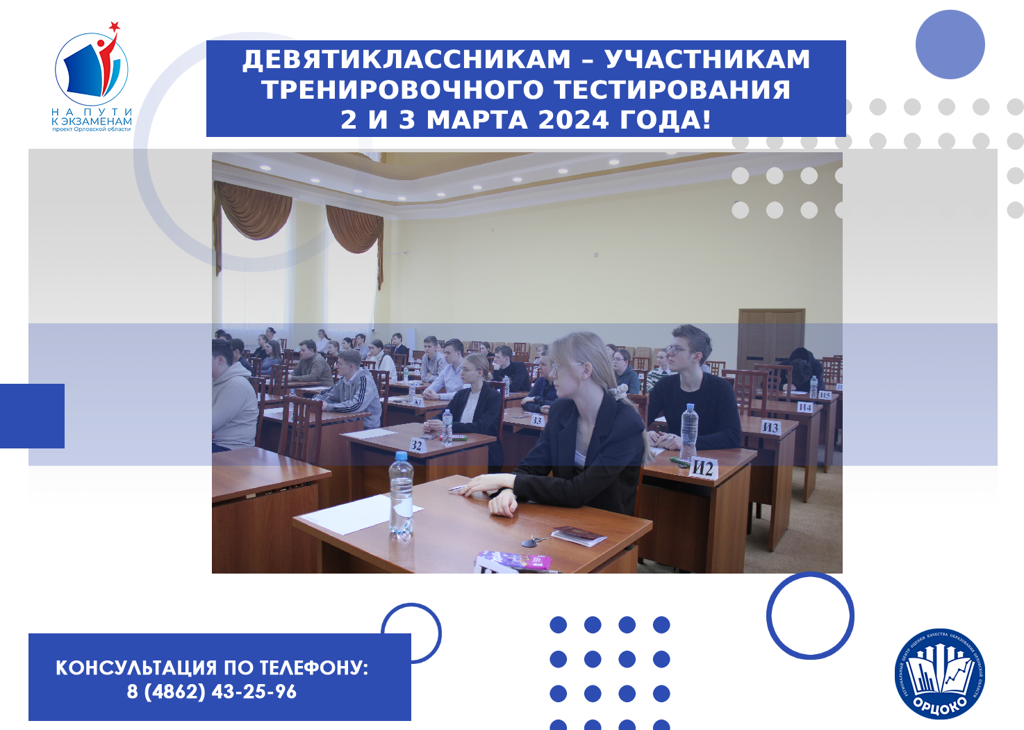 Девятиклассникам – участникам тренировочного тестирования 2 и 3 марта 2024 года!