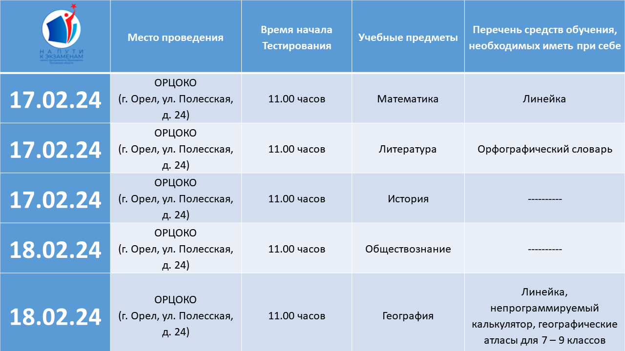 Девятиклассникам – участникам тренировочного тестирования 17 и 18 февраля 2024 года!