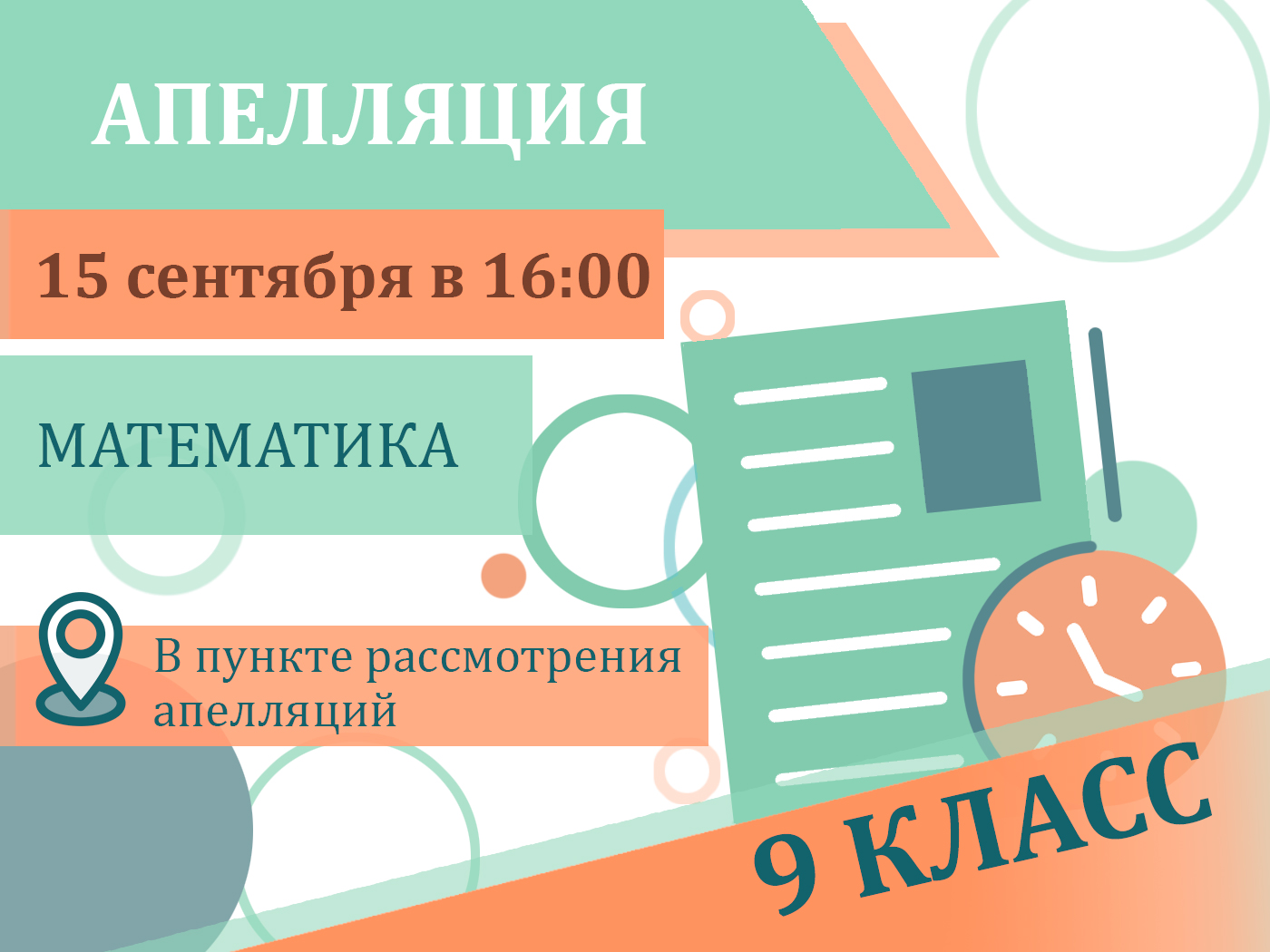 Конфликтная комиссия Орловской области информирует участников основного государственного экзамена о том, что рассмотрение апелляций о несогласии с выставленными баллами по математике (05.09.2022 г.) состоится 15 сентября 2022 года.