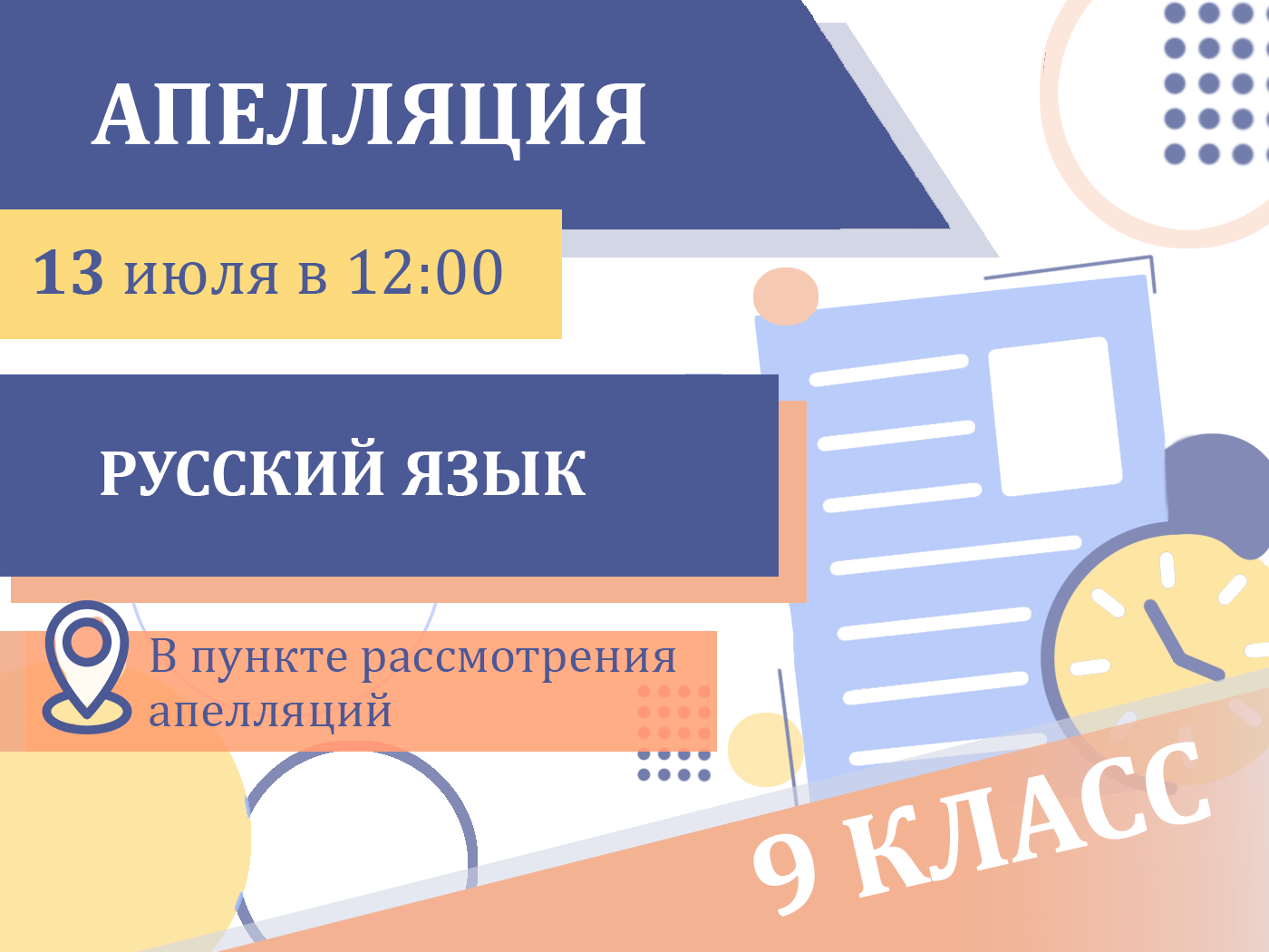 Апеллянты, выбравшие при подаче апелляции форму рассмотрения апелляции «в моем присутствии (в пункте рассмотрения апелляций)», должны явиться в пункт рассмотрения апелляций к 12 ч 00 мин 13 июля 2022 года.