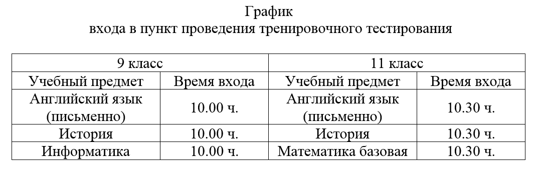 Участникам тренировочного тестирования (13 февраля 2022 года)!