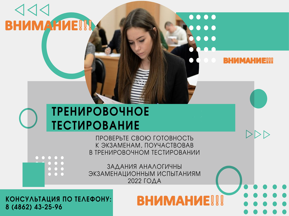 Обучающихся, пропустивших тренировочное тестирование в основные дни с 5 по 13 февраля 2022 года, просим зарегистрироваться для прохождения тестирования в резервные дни – 19 и 20 февраля 2022 года. Для регистрации необходимо позвонить в Региональный центр оценки качества образования по телефону 43 — 25 — 96 до 12.00 часов 18 февраля 2022 года.