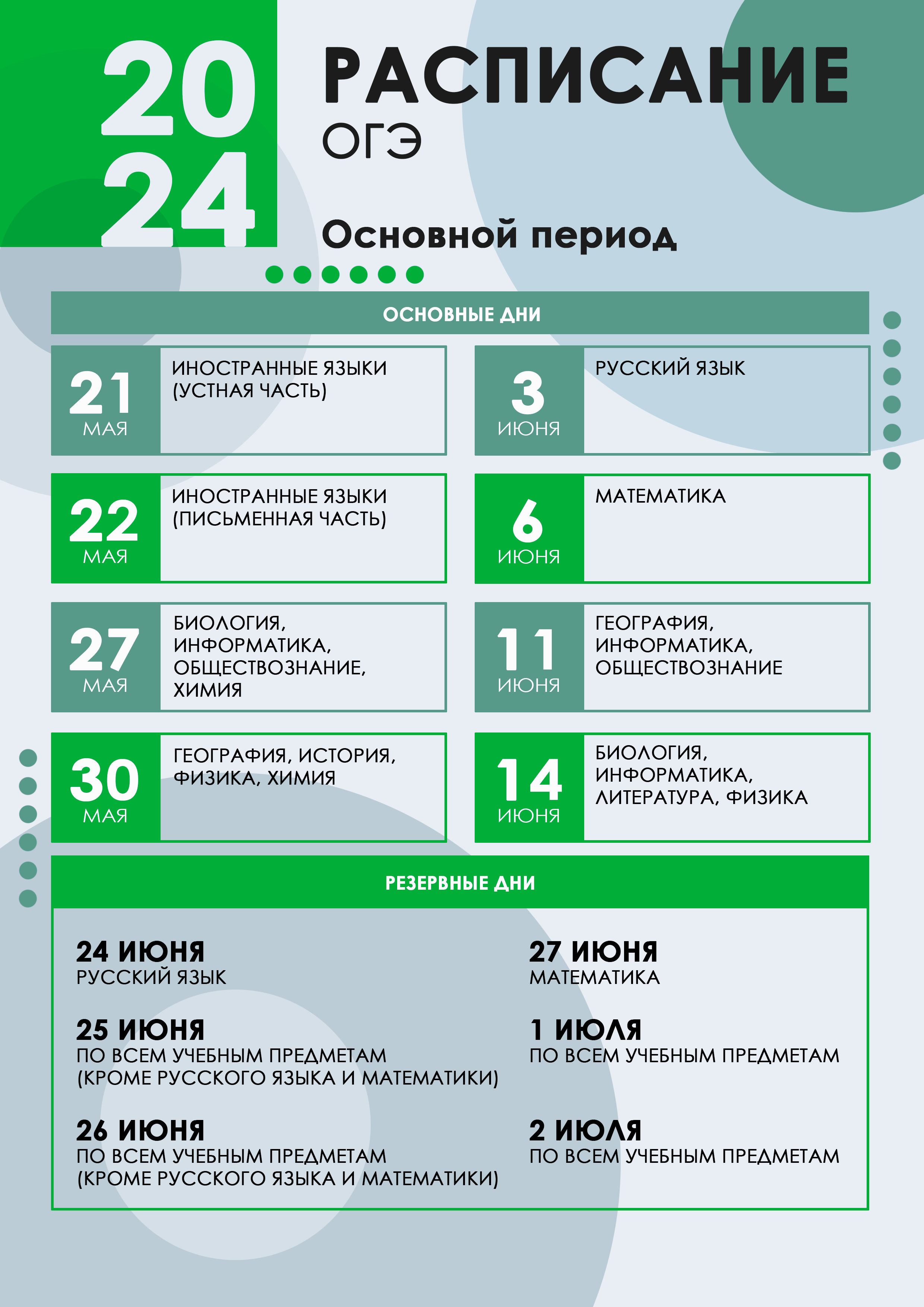Начинается основной период 21 мая 2024 года с экзаменов по иностранным языкам (Говорение), а 22 мая 2024 года девятиклассники будут сдавать письменную часть экзамена по иностранным языкам.