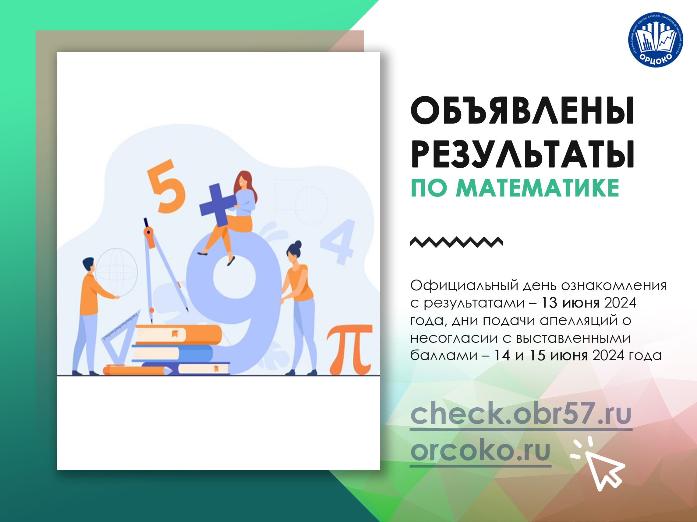 11 июня 2024 года государственная экзаменационная комиссия Орловской области для проведения государственной итоговой аттестации по образовательным программам основного общего образования утвердила результаты участников основных дней основного периода ОГЭ и ГВЭ по математике (6 июня 2024 года).