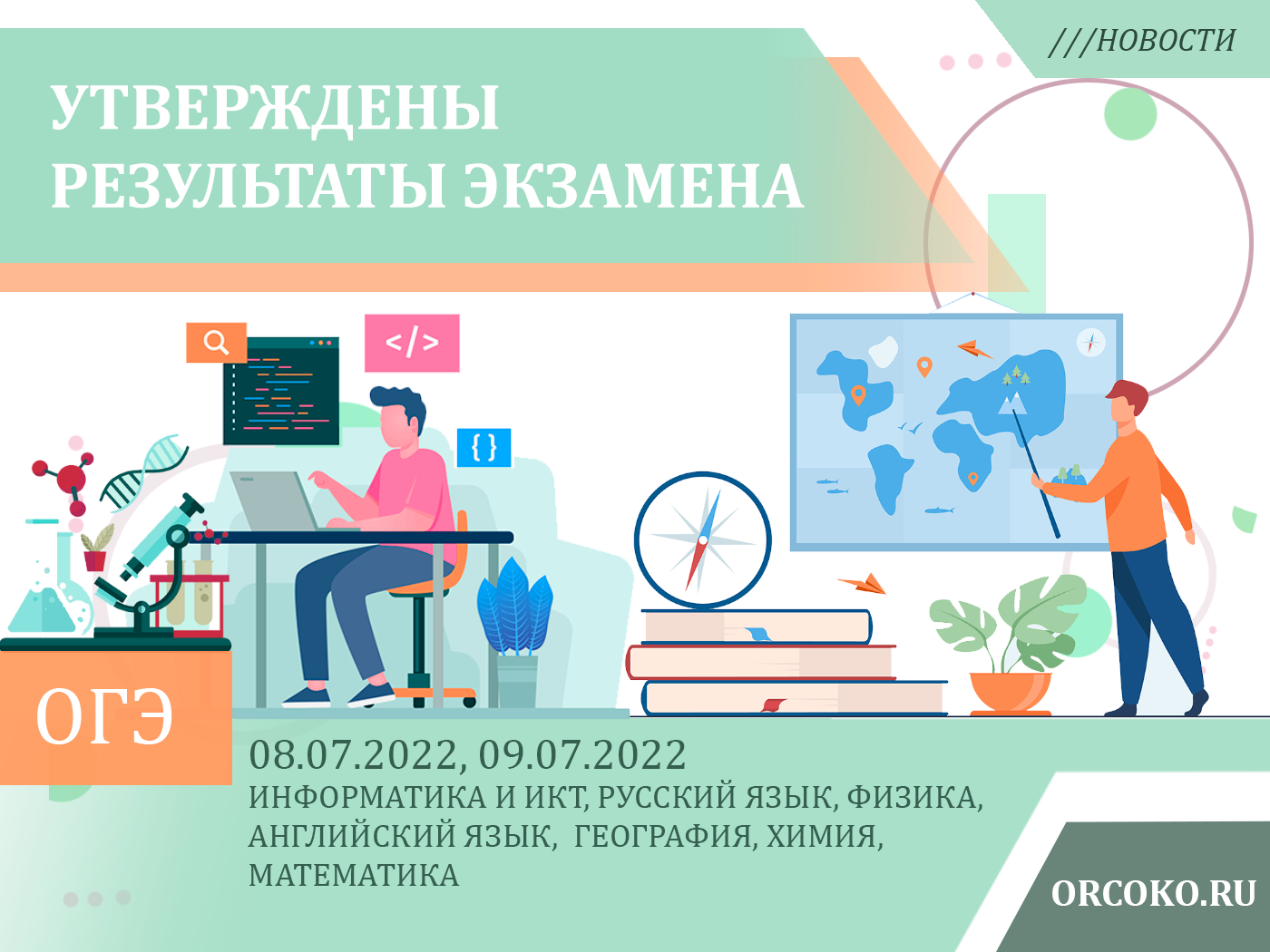 9 июля 2022 года государственная экзаменационная комиссия Орловской области для проведения государственной итоговой аттестации по образовательным программам основного общего образования утвердила результаты основного государственного экзамена и государственного выпускного экзамена по информатике и ИКТ, русскому языку, английскому языку, проведенных 8 июля 2022 года, физике, географии, русскому языку, химии, математике, проведенных 9 июля 2022 года