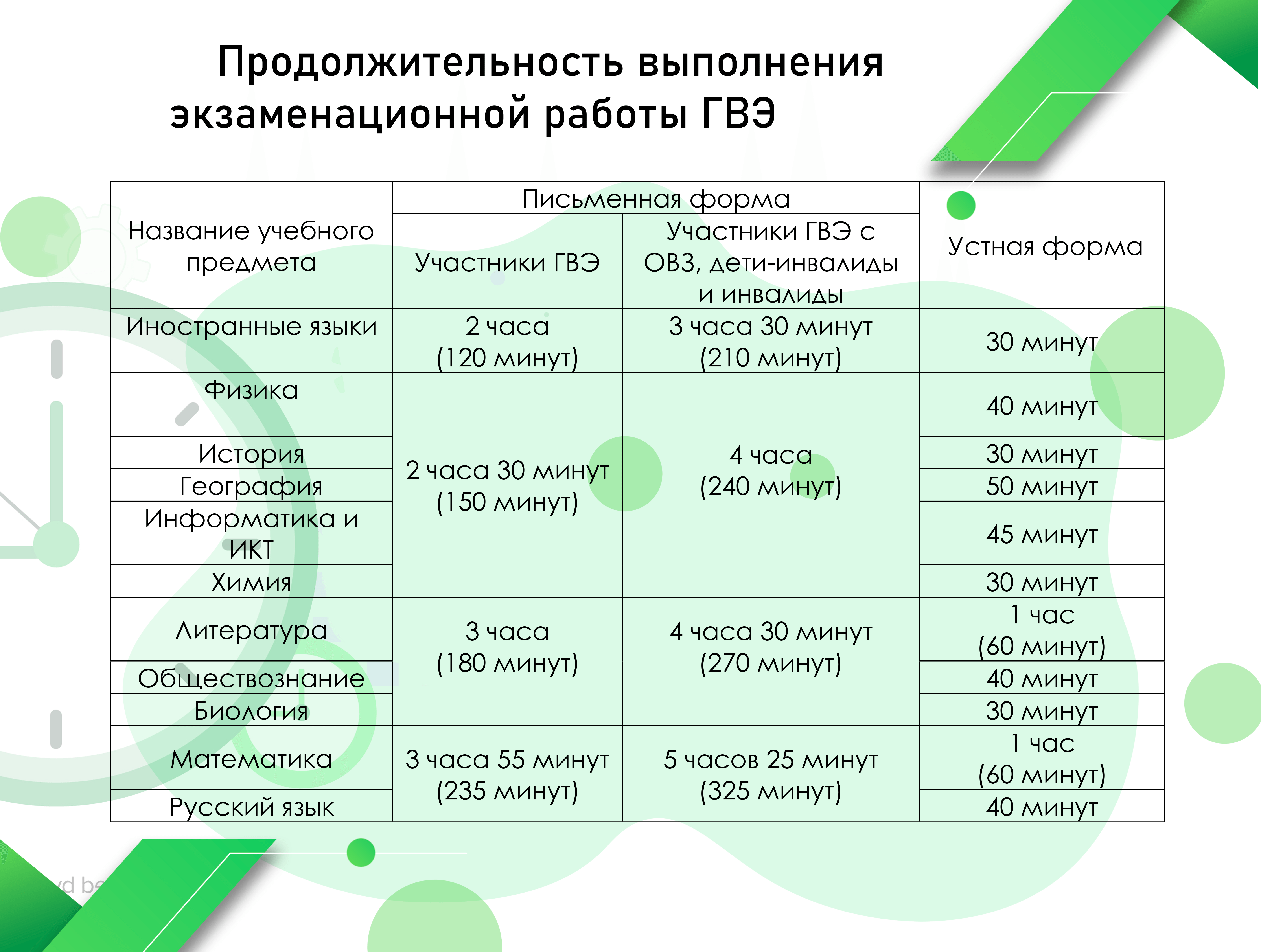 Продолжительность выполнения экзаменационных работ ГВЭ | КУ ОО "РЦОКО"