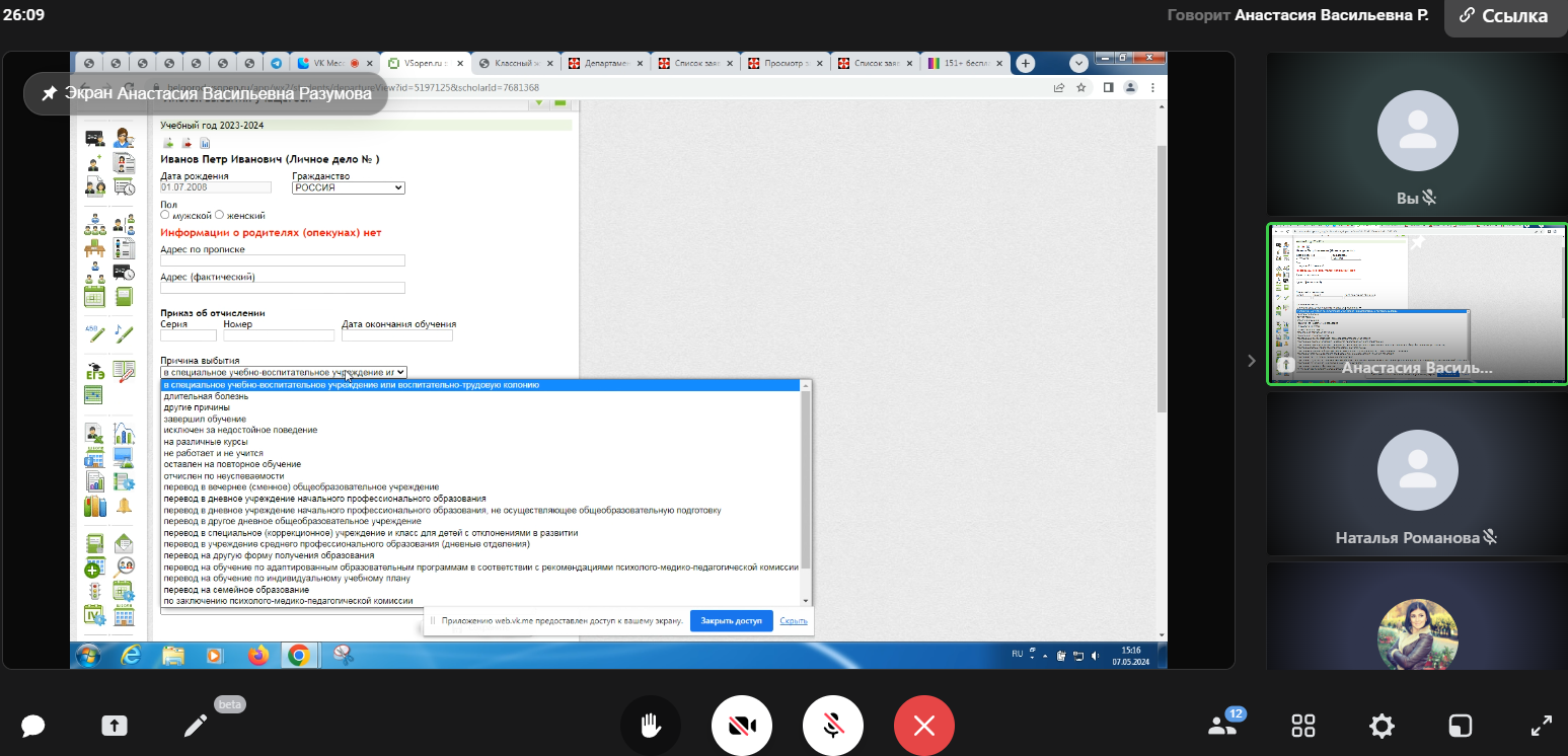 На совещании были рассмотрены типичные ошибки в работе с РГИС «Виртуальная школа», сложности в обработке заявлений в первый класс и отдельных вопросов, возникающих у участников вебинара.