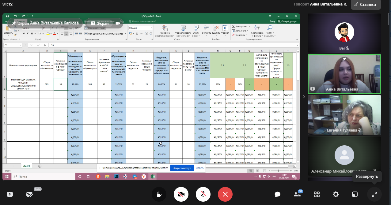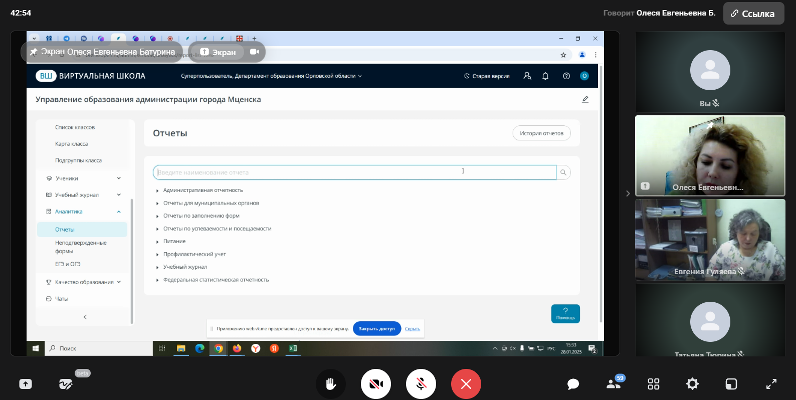 28 января 2025 года состоялся «Цифровой час» для муниципальных координаторов. Практико-ориентированный подход являлся приоритетным в проведении ВКС, которая была посвящена работе на цифровых платформах ИСОУ «Виртуальная школа», ФГИС «Моя школа» и ИКОП «Сферум».